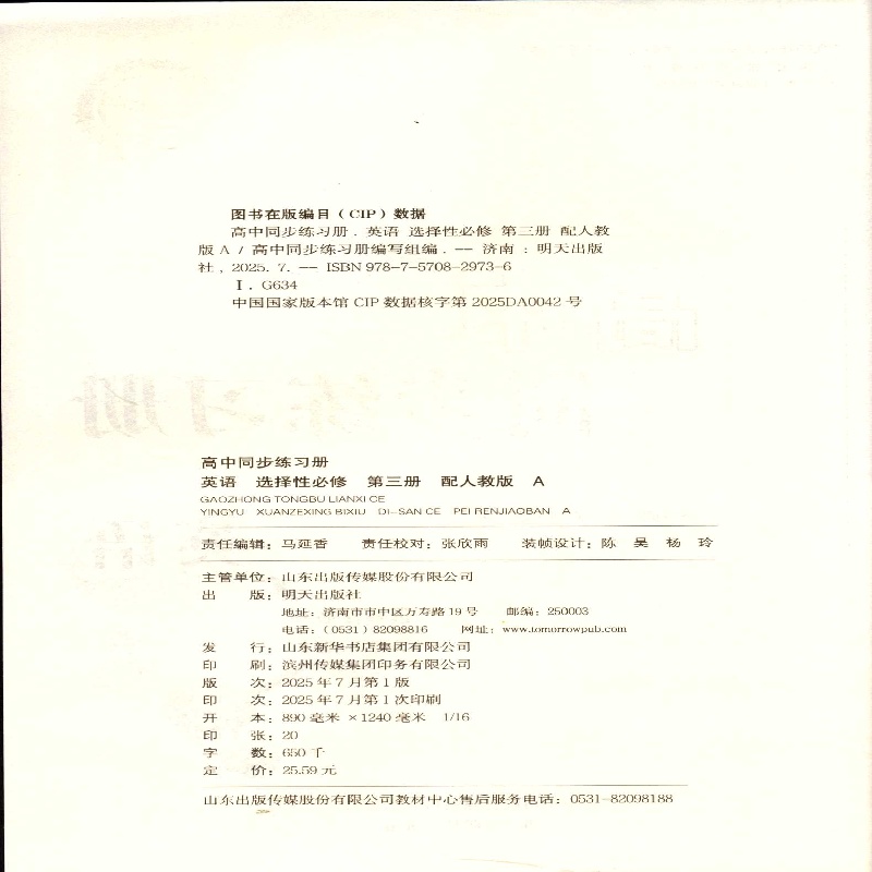社A版 2025英语选择性必修3三高中同步练习册配人教版 明天出版