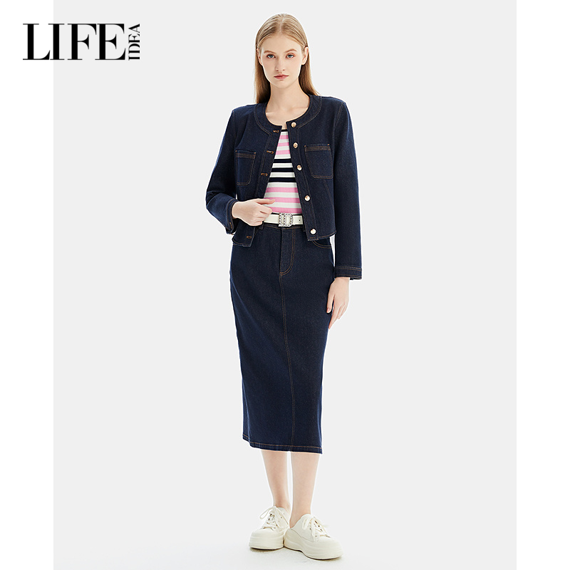 显瘦水洗圆领短外套 复古牛仔蓝外套修身 莱芙·艾迪儿25秋季 新款