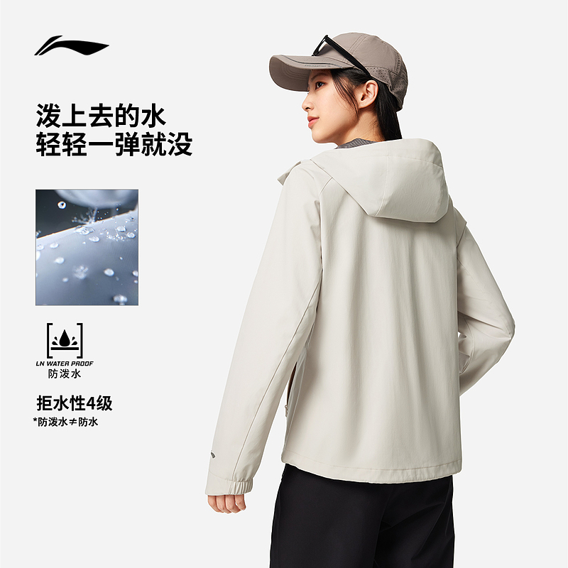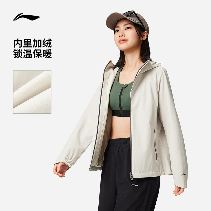 防泼水防风亲肤加绒保暖宽松运动风衣 女款 李宁运动服 健身系列