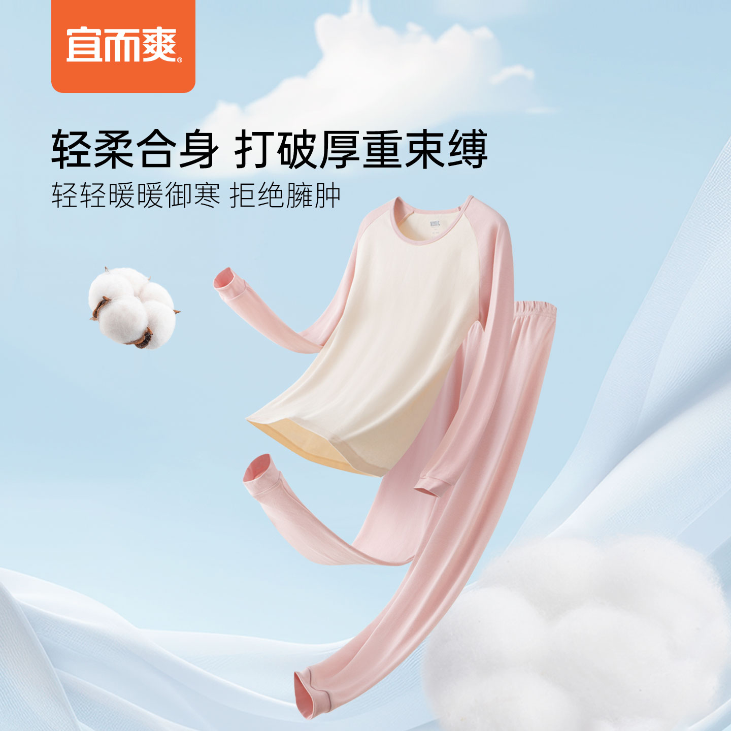 秋冬季 宜而爽女士纯棉保暖内衣撞色圆领全棉秋衣秋裤 内搭打底衫