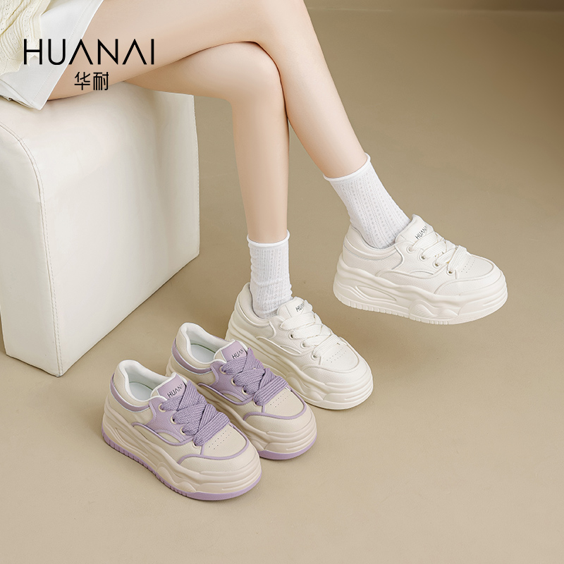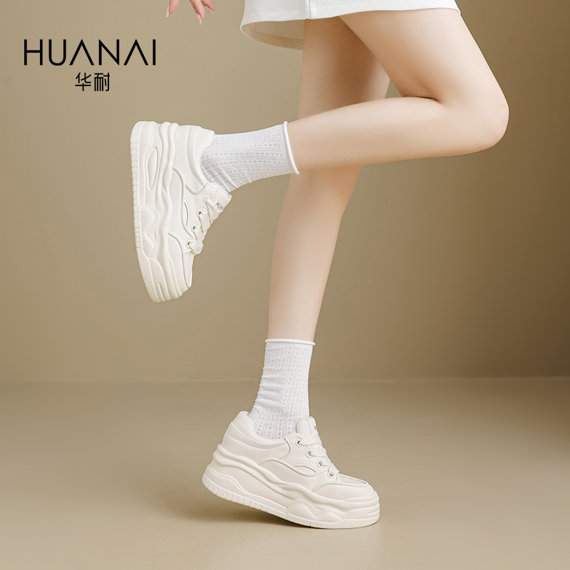 女小个子增高轻便百搭运动休闲小白鞋 厚底板鞋 新款 华耐2025春秋季