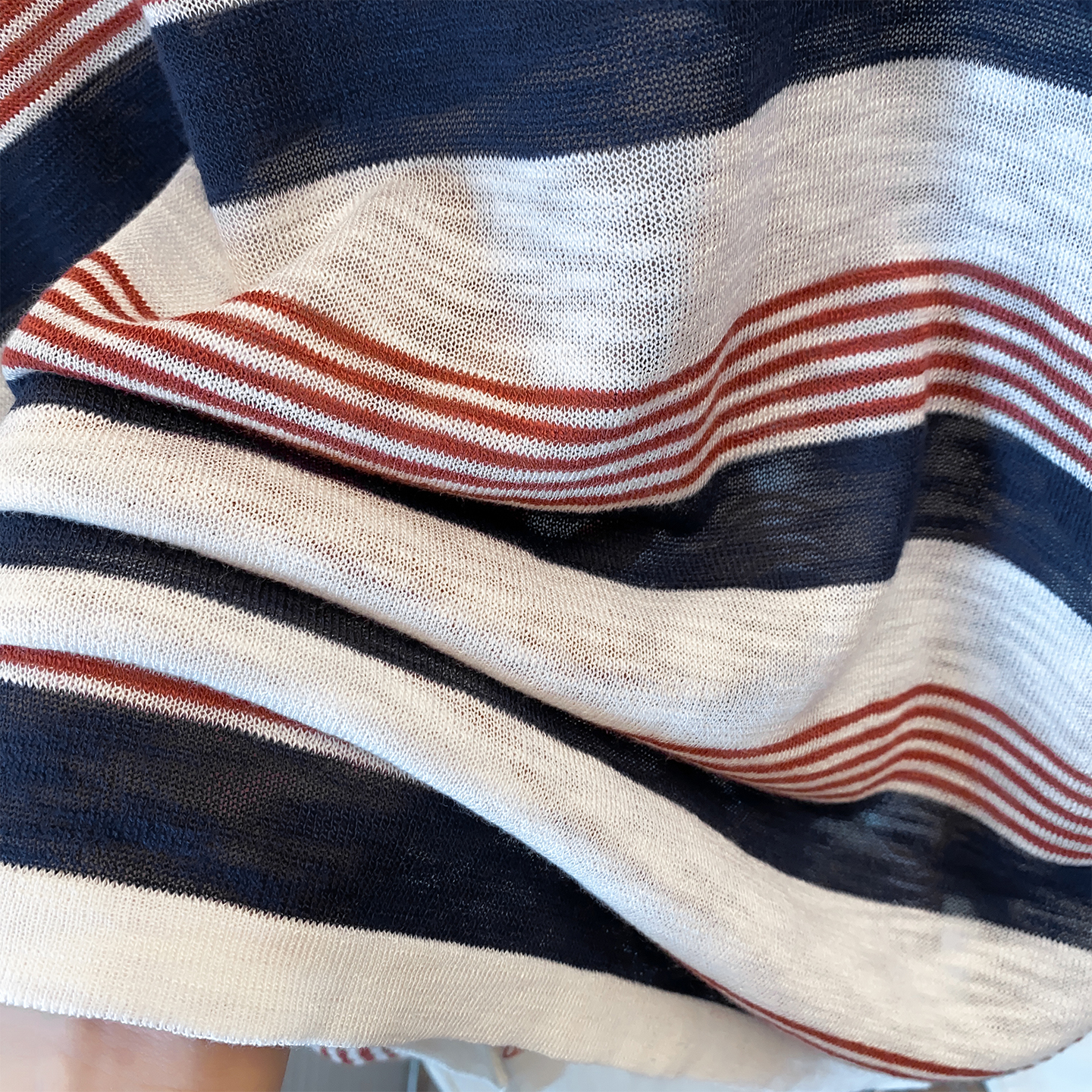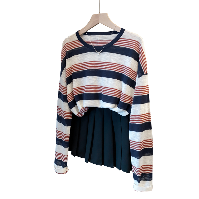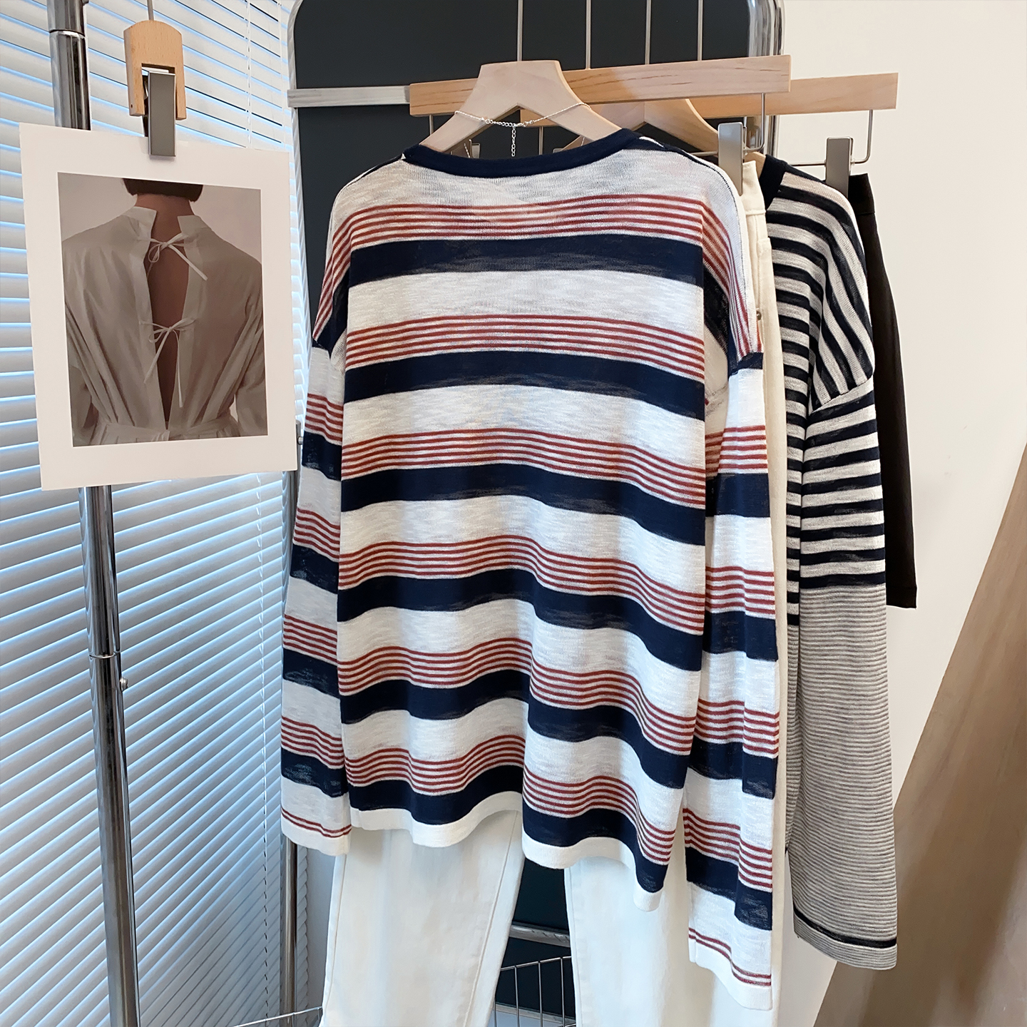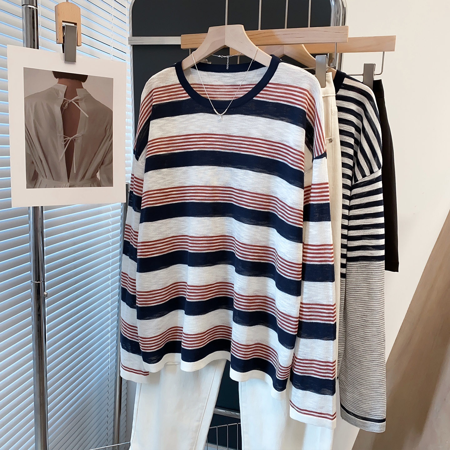 罩衫 条纹圆领针织衫 宽松慵懒风外穿上衣薄内搭长袖 新款 女2025秋装
