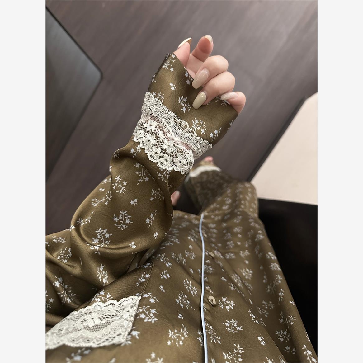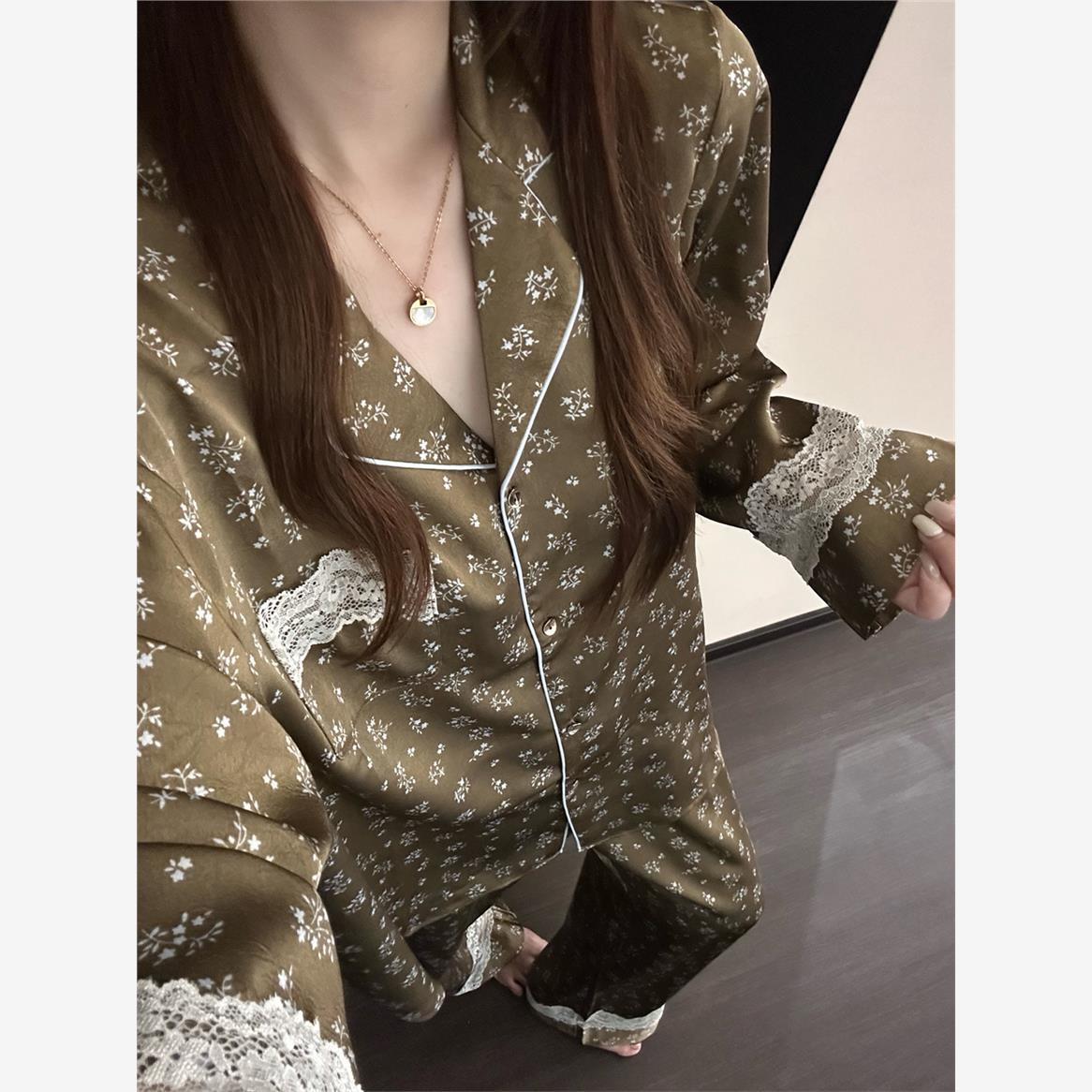 大码 2025春秋季 家居服两件套 高级感蕾丝碎花印花冰丝睡衣女款 法式