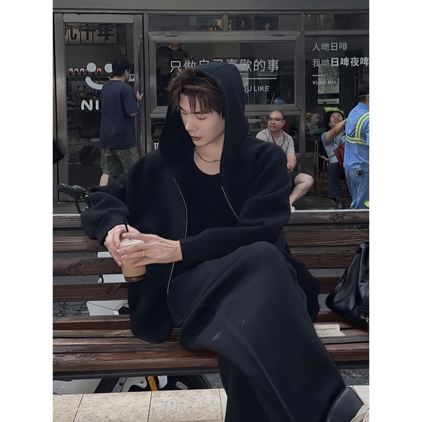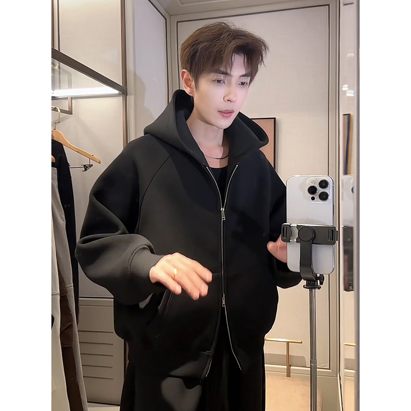 美式 外套 复古潮牌加绒加厚连帽卫衣女秋冬oversize宽松慵懒风开衫