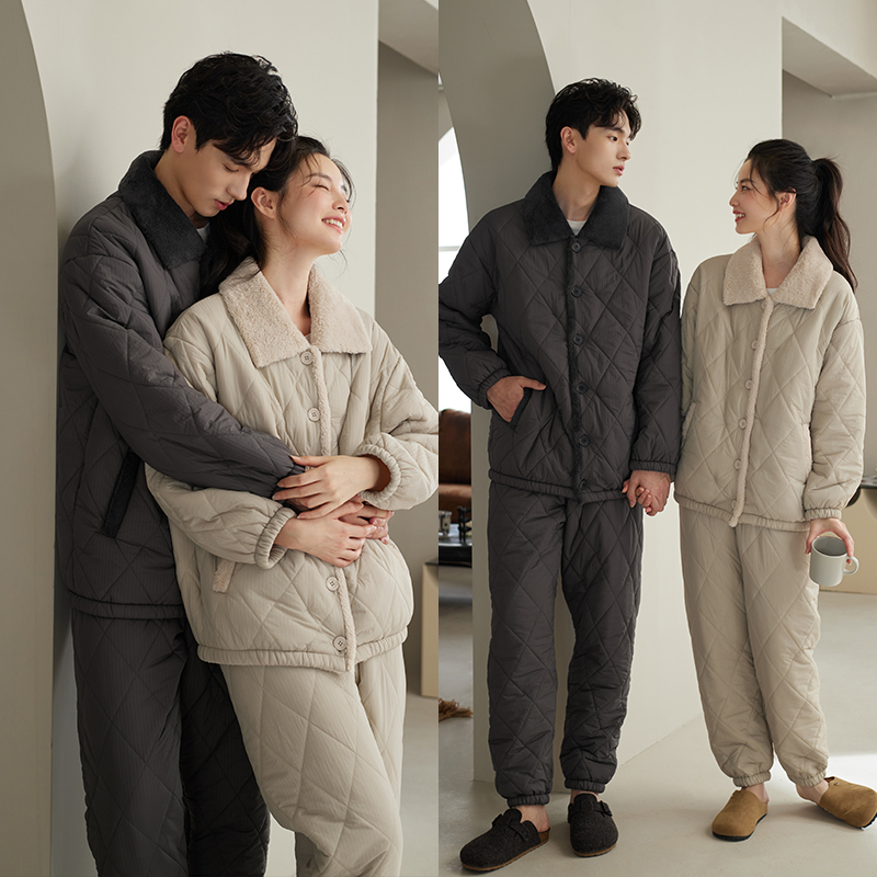 家居服套装 轩靓三层夹棉情侣睡衣女冬季 男士 可外穿大码 抗静电时尚
