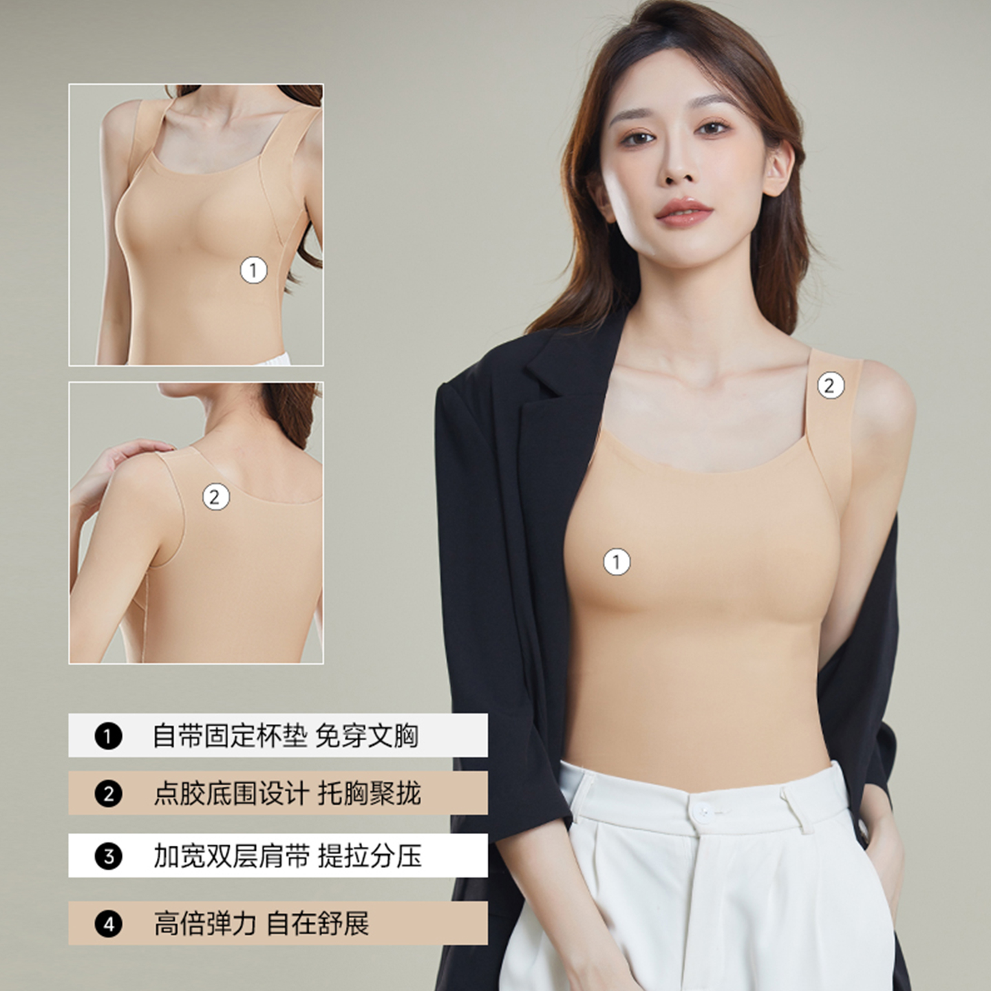 猫人玻尿酸润肤吊带背心女带胸垫2025秋冬新款 内搭可外穿保暖上衣