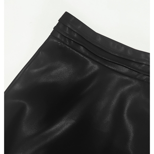 复古赫本风优雅通勤蛋白皮软糯垂坠感高腰半身裙伞裙美拉德色系春