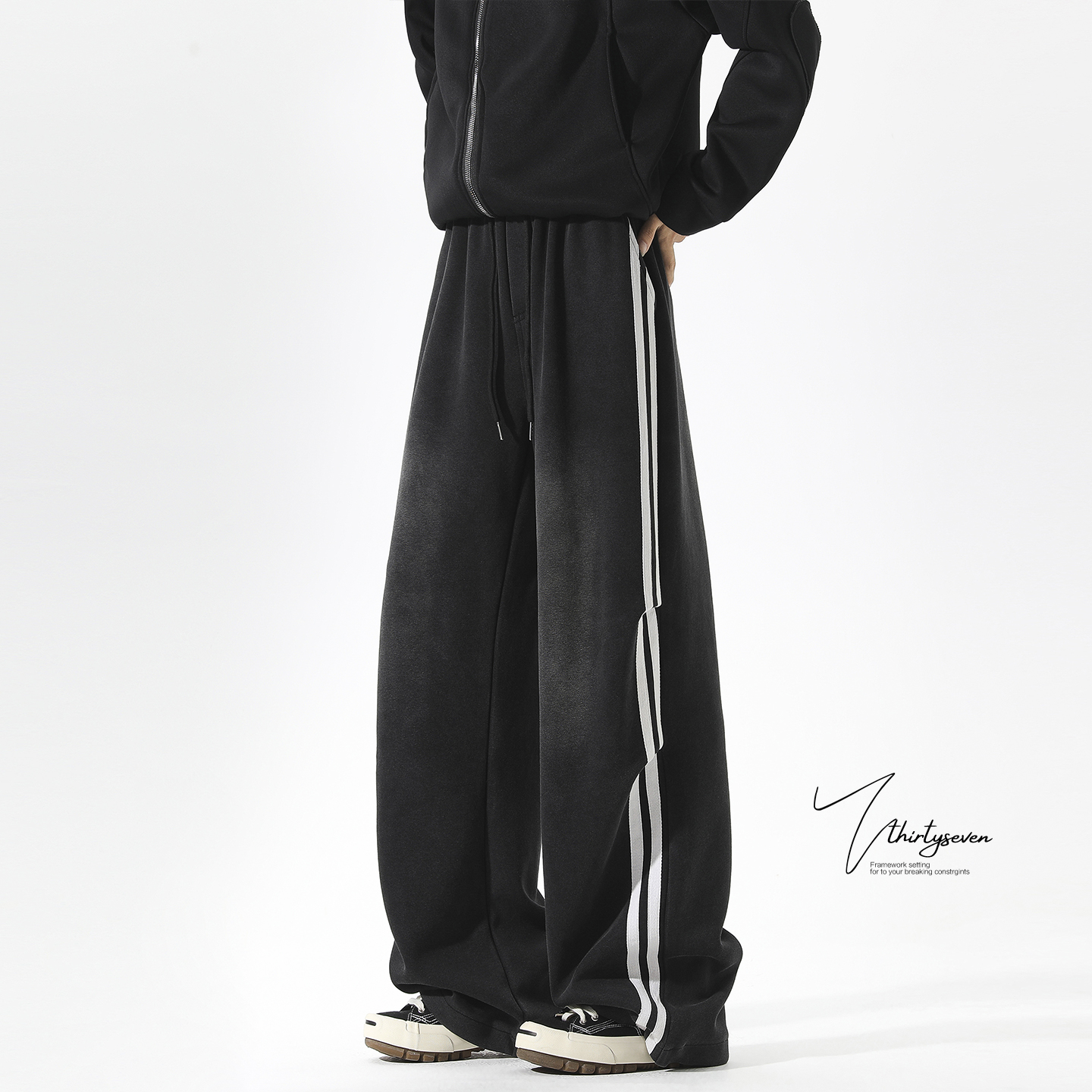 子青少年长裤 V37美式 潮牌cleanfit垂感阔腿裤 男秋季 高街条纹卫裤