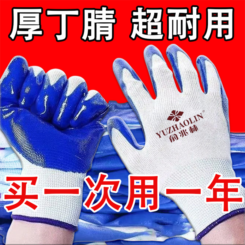 正品 耐磨劳保手套丁腈乳胶维修工作建筑工地加厚防滑防护男女通用