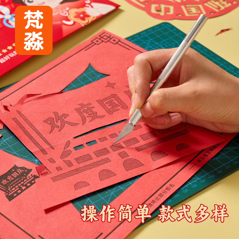 国庆节爱国主题剪纸窗花底稿图案半成品非遗手工diy材料儿童玩具6