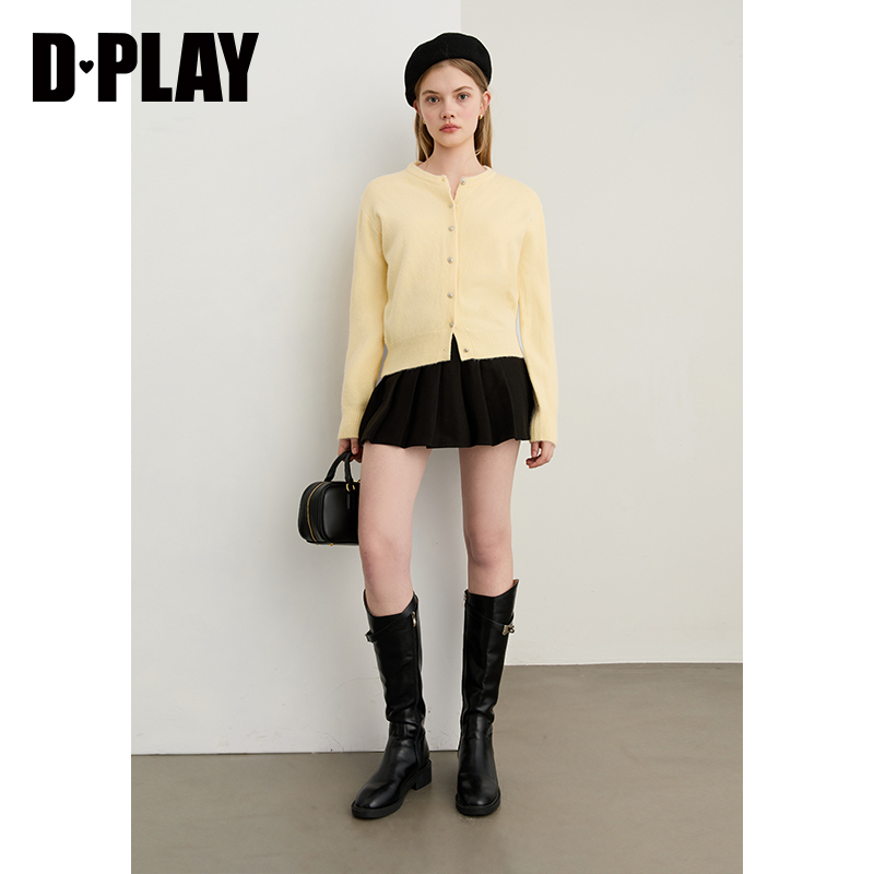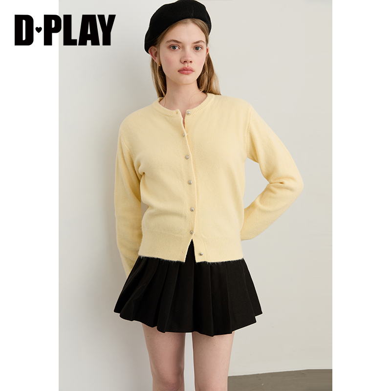 上衣多巴胺开衫 DPLAY2025年秋季 女气质长袖 黄色针织衫 外套 新款