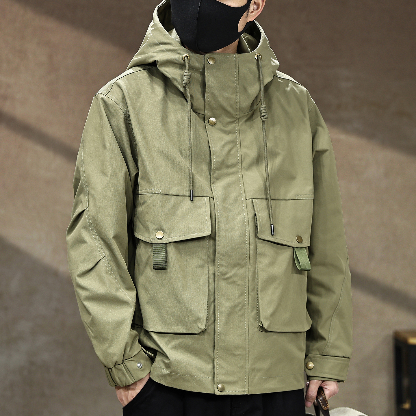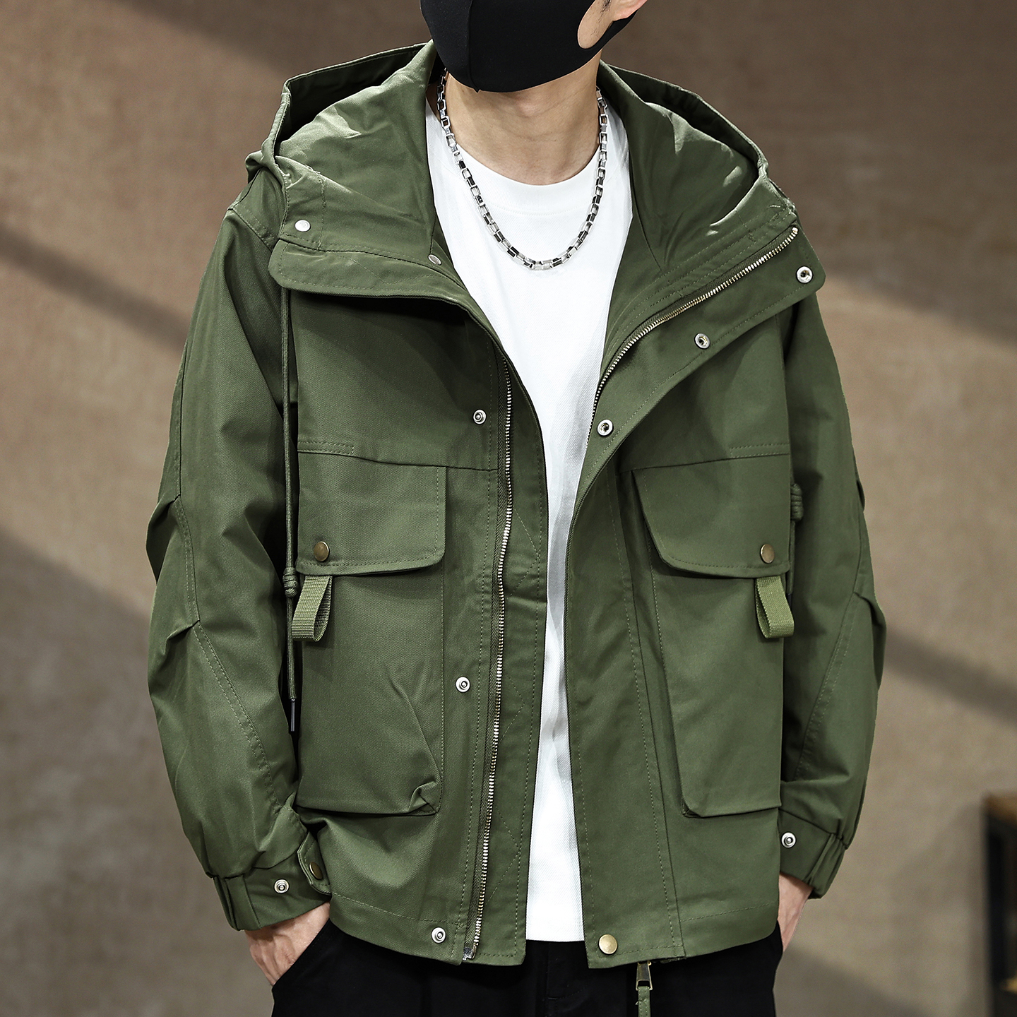 春秋新款 夹克男士 连帽防风冲锋衣外套男 复古户外机能工装 高端美式