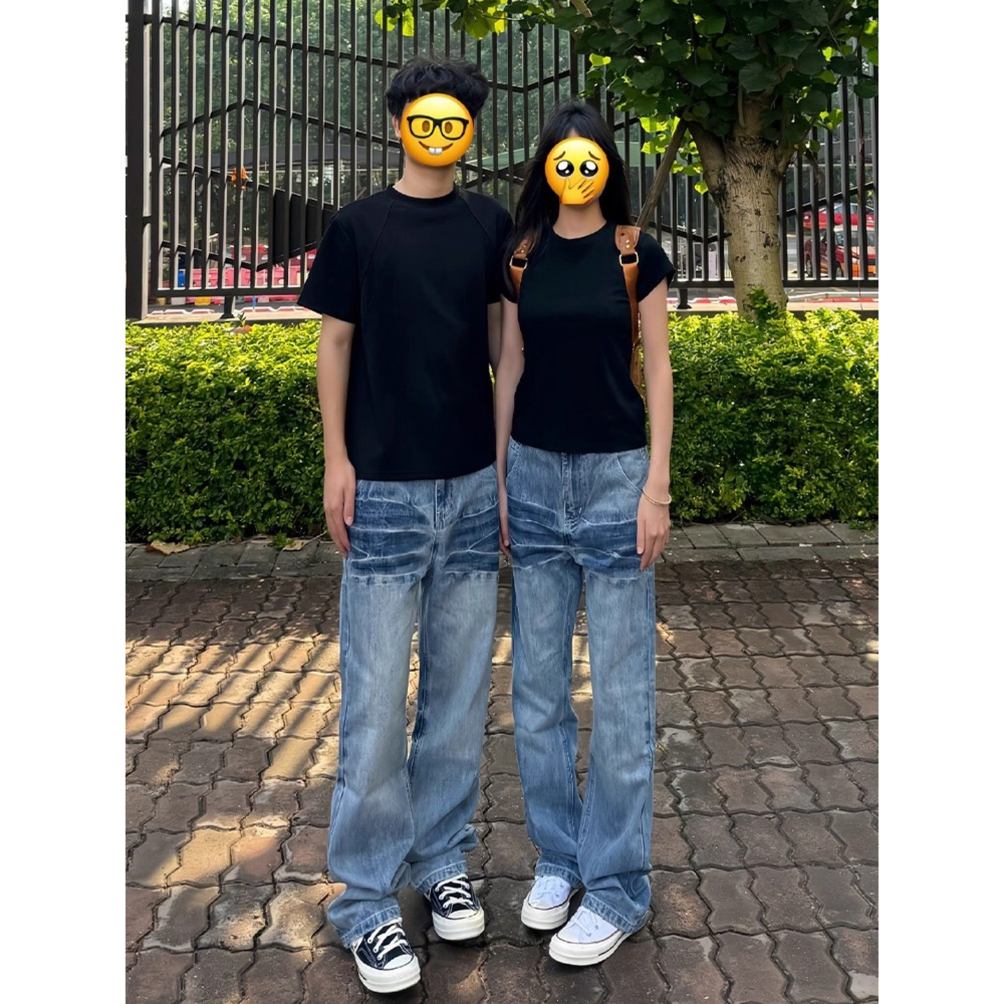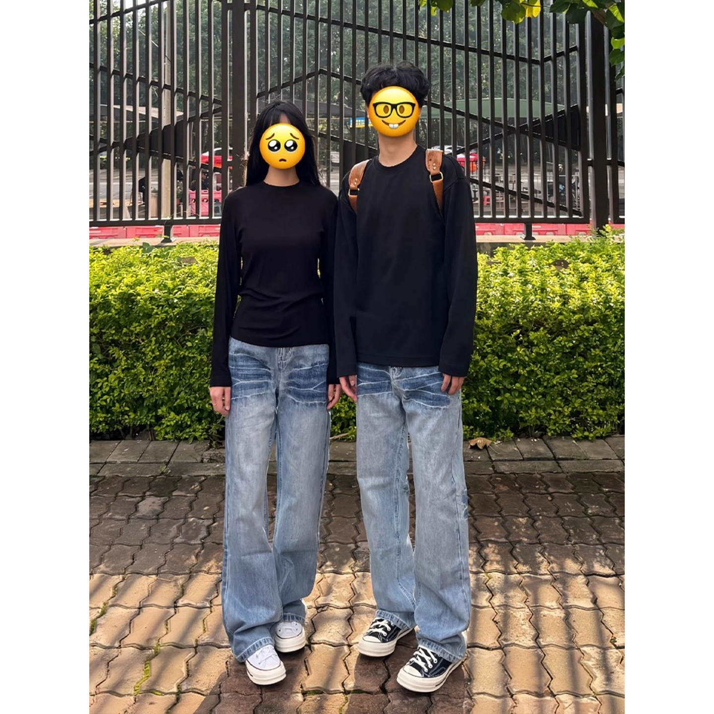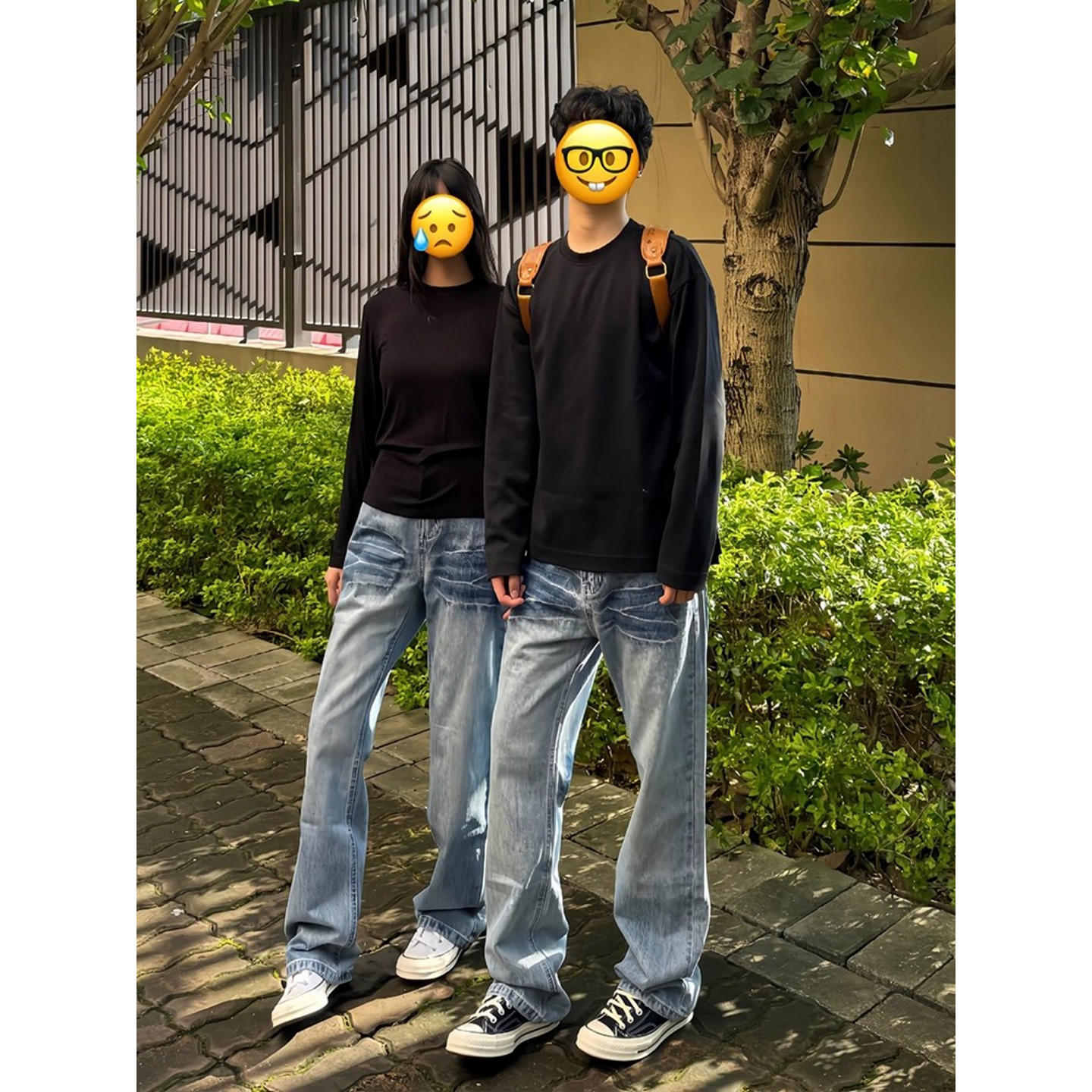 男生酷帅穿搭套装 美式 t恤秋季 搭配纯棉长袖 高街vibe闪电纹牛仔裤
