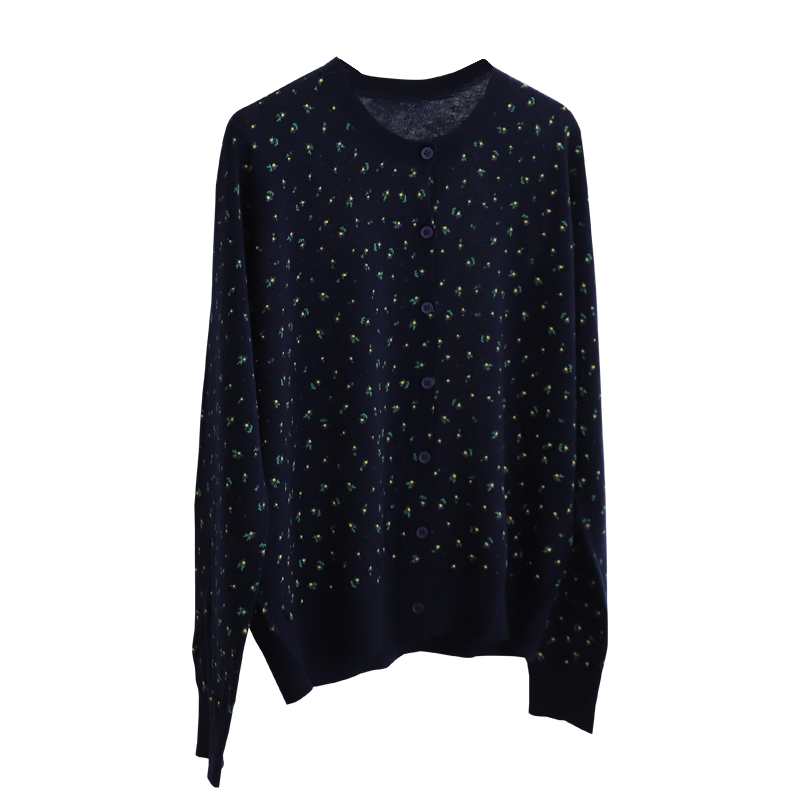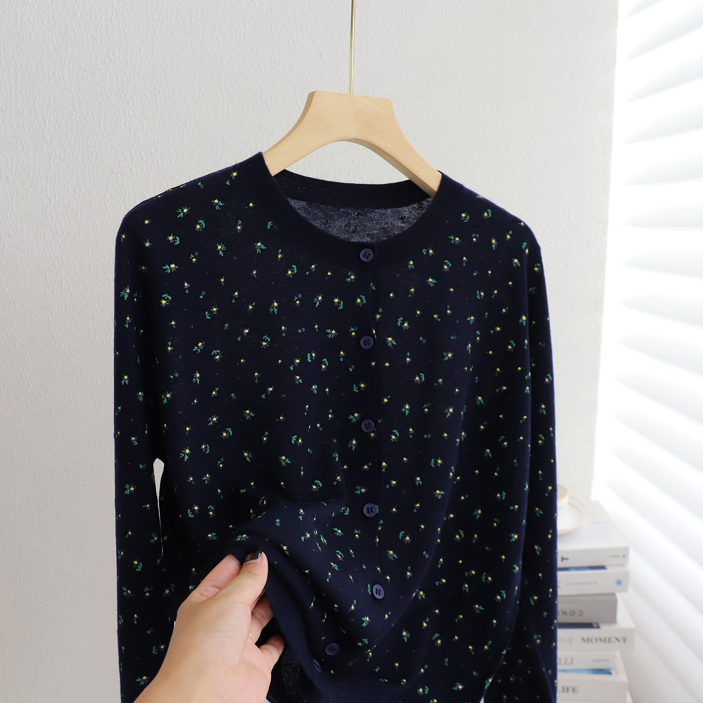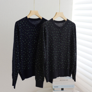 毛衣开衫 2025新款 女宽松显瘦薄款 针织衫 外套上衣 早秋圆领带图案