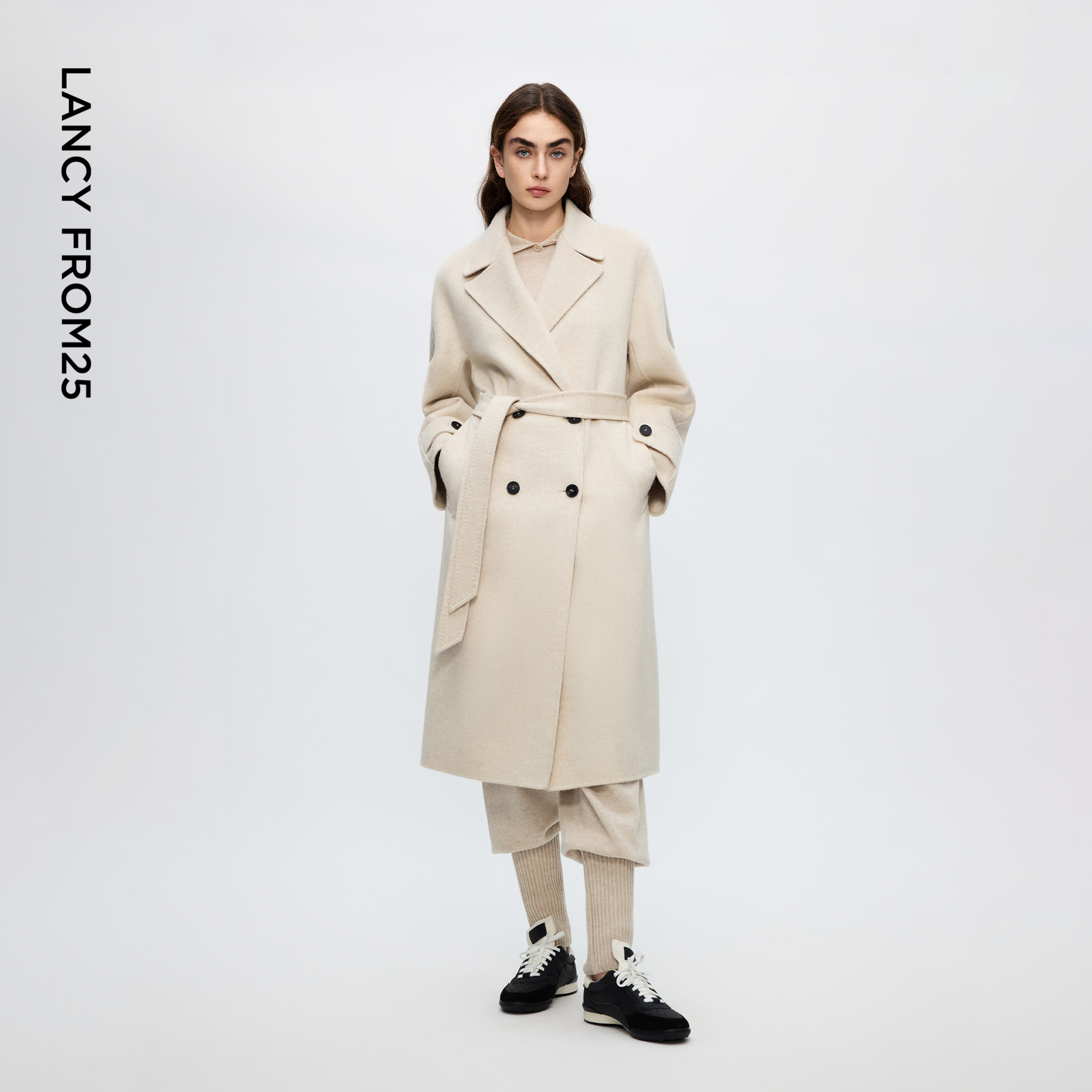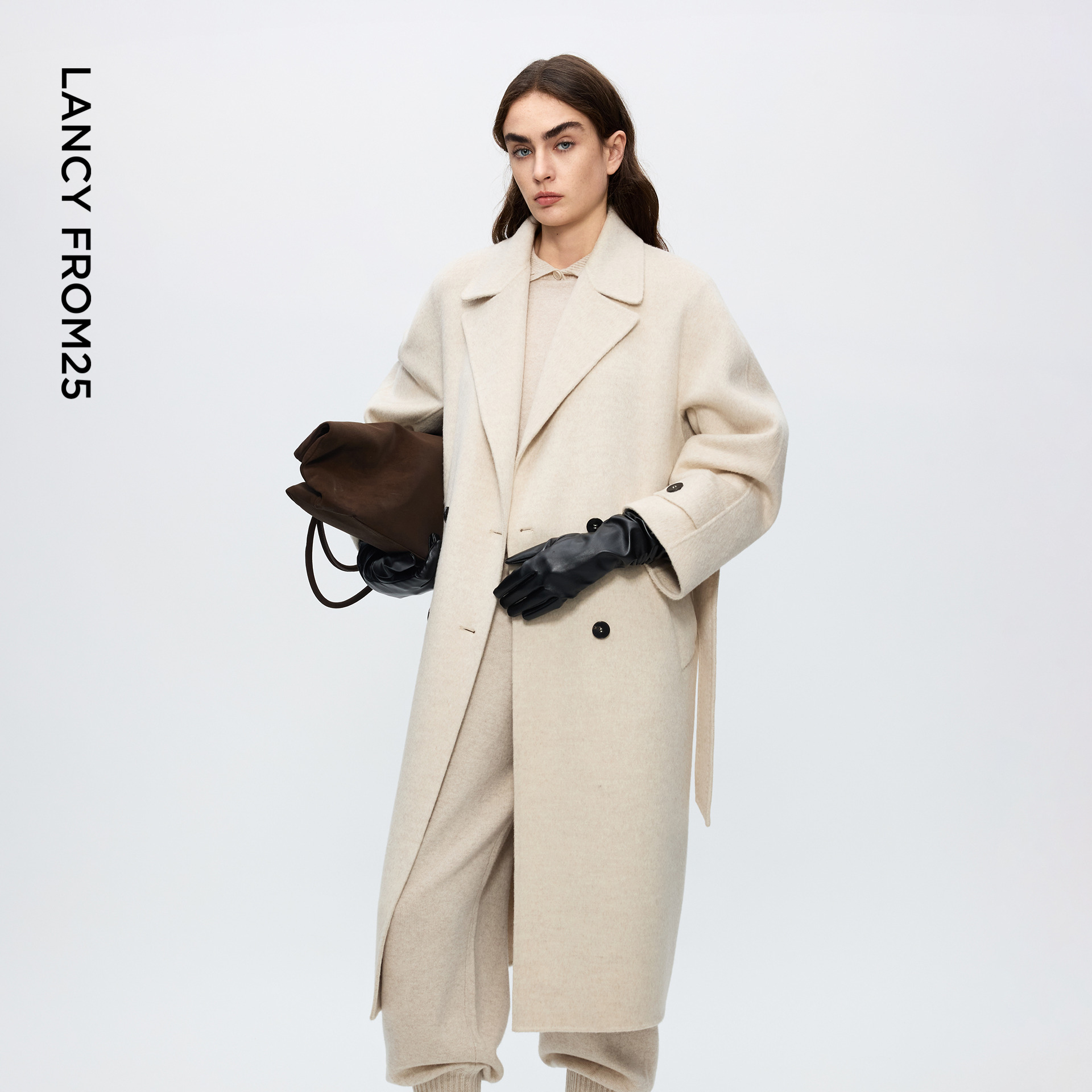 新款 2025冬季 秋水伊人优雅翻领毛呢外套 通勤大衣 100%绵羊毛
