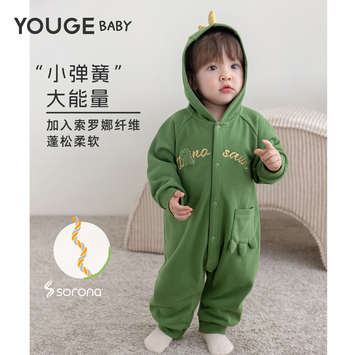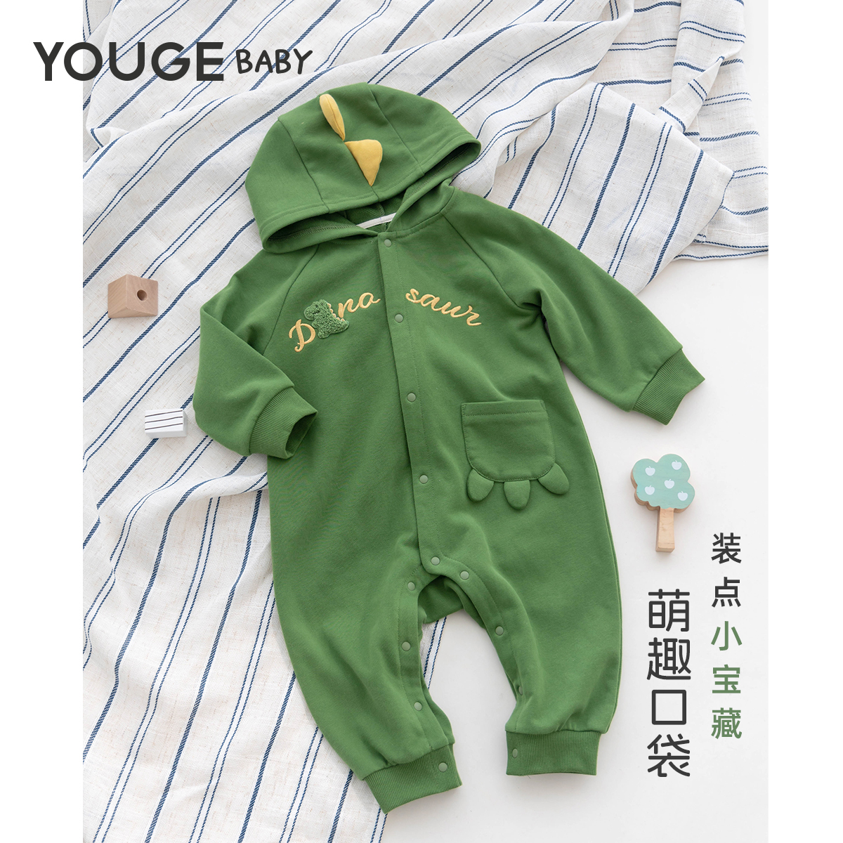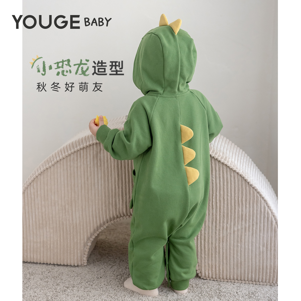 萌趣小恐龙连体衣新生儿柔软亲肤爬服潮 新款 YOUGE幼歌 婴幼儿秋季