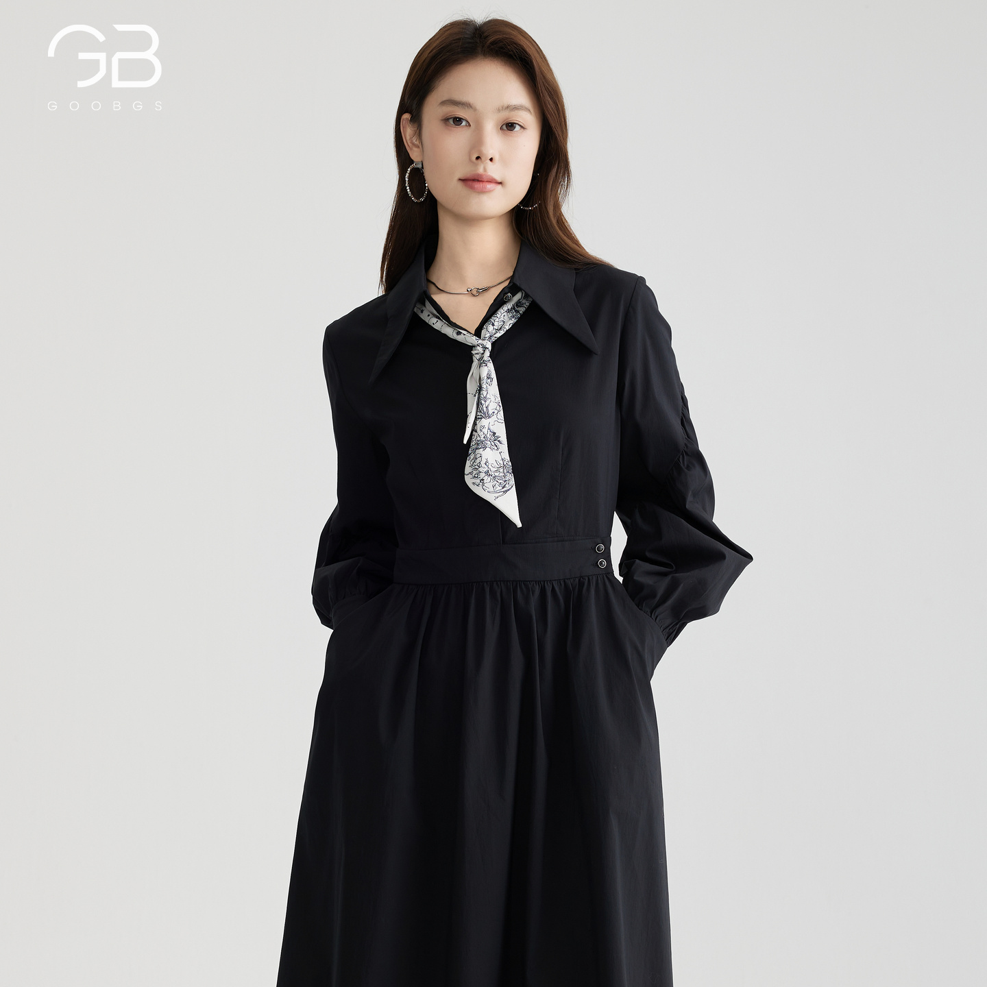 格雷系学院风花边半高领连衣裙 新款 乐町韩系假两件长袖 连衣裙秋季