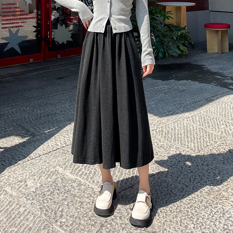 KMV真维斯糯米裙深灰初秋高腰A字中长裙2025新款 韩系裙子 秋冬女装