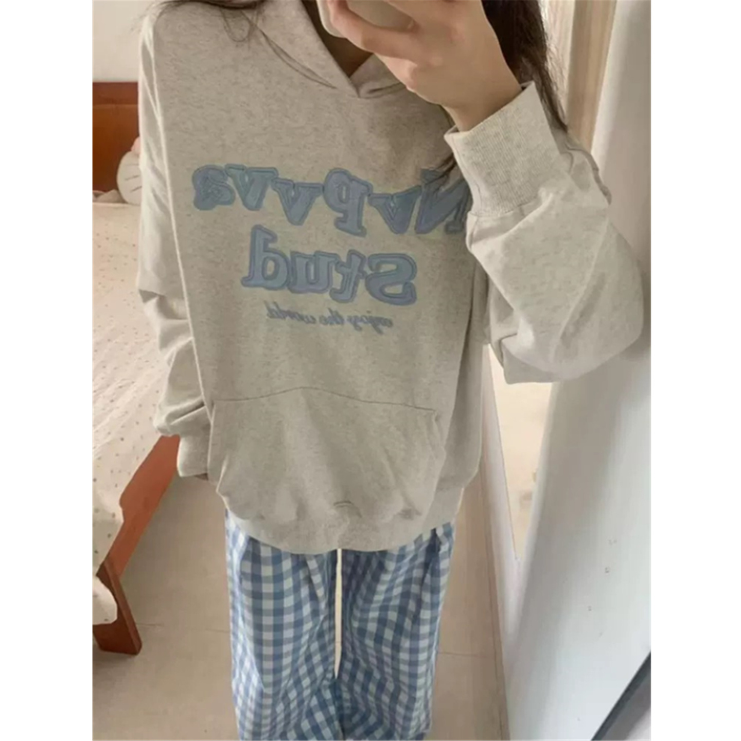美式 外套宽松上衣 复古贴布字母刺绣连帽卫衣女春秋设计感小众薄款