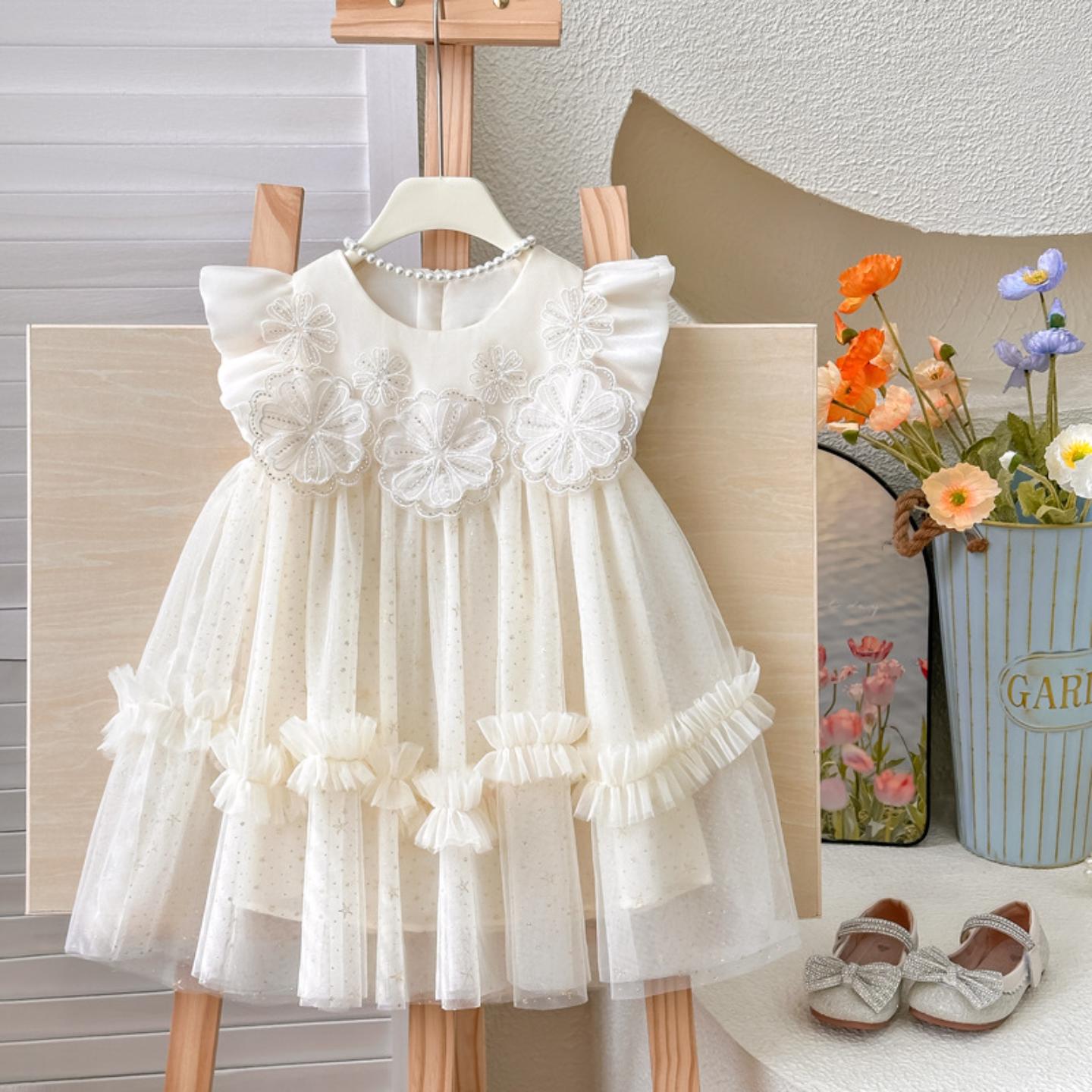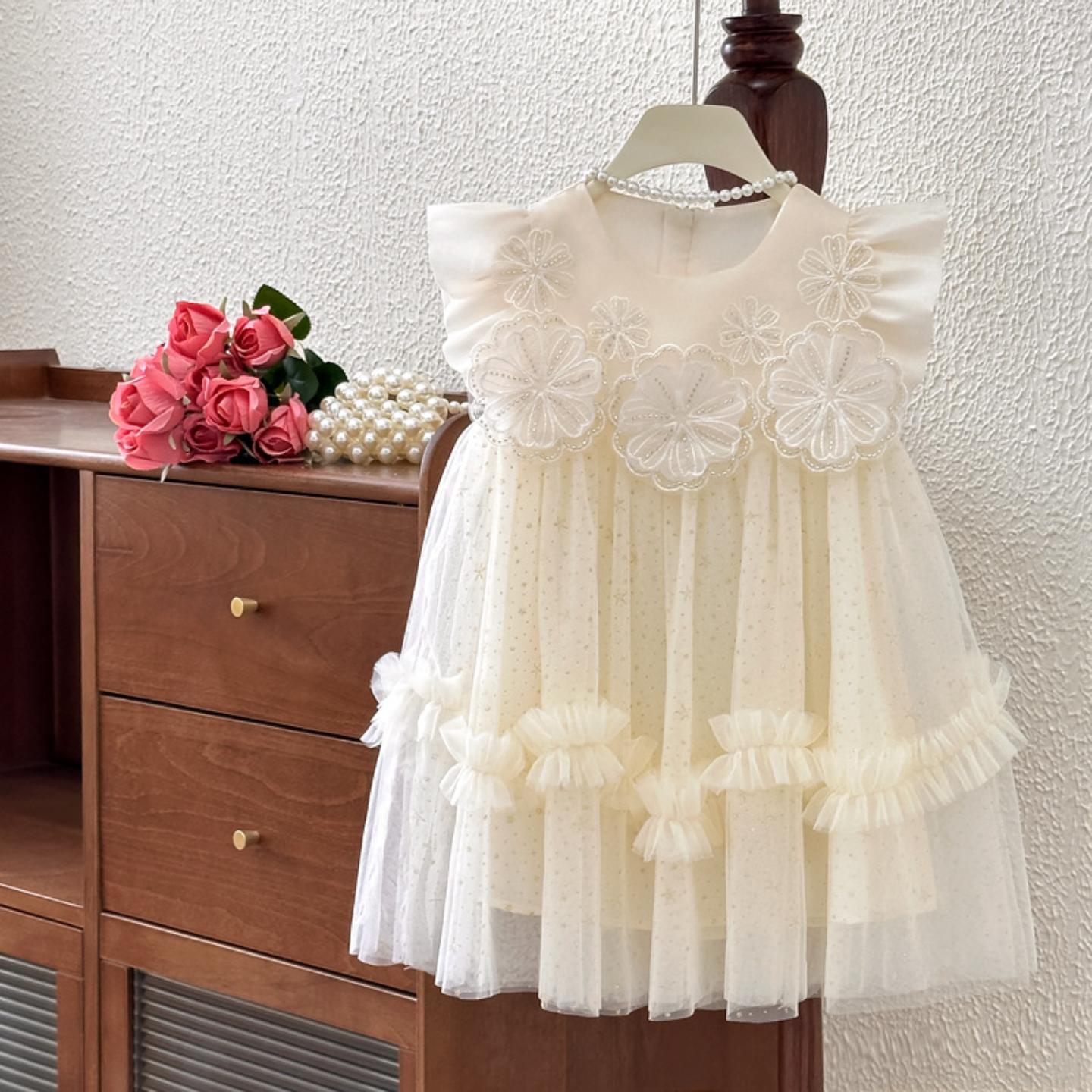 儿童演出服蓬蓬裙女童舞蹈纱裙小学生红歌比赛大合唱服装 朗诵表演