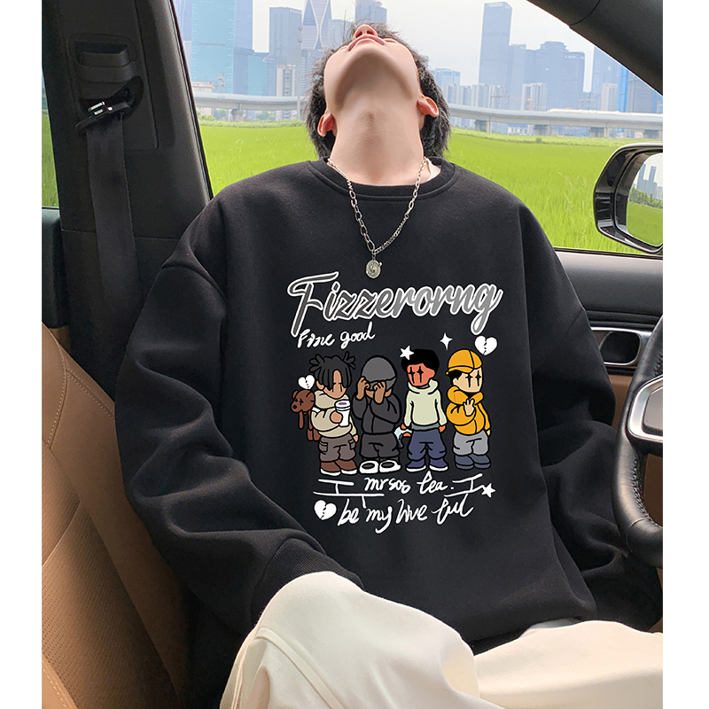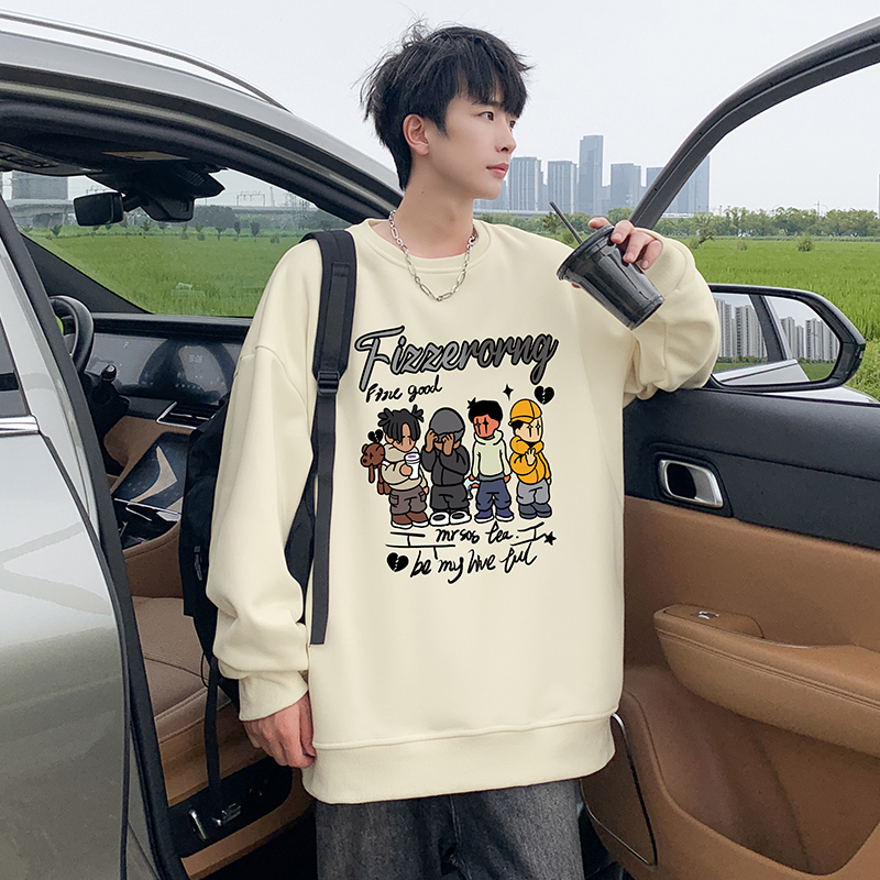 休闲潮牌长袖 套头卫衣男春秋季 圆领上衣美式 宽松大码 外套 2025新款