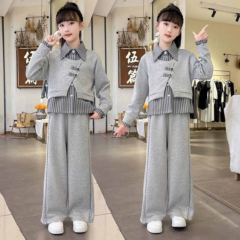 儿童洋气韩版 2025新款 运动假两件套女孩休闲卫衣春秋 春装 女童套装