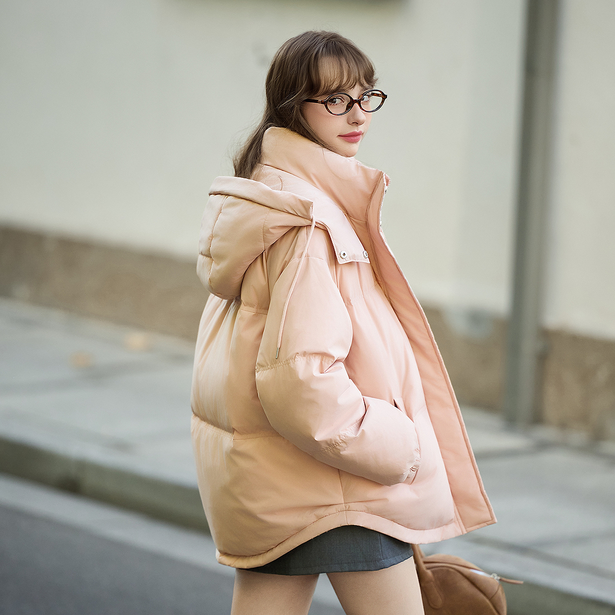 新款 羽绒服2025冬季 情侣男女加厚宽松连帽面包羽绒服 短款 骆驼女装