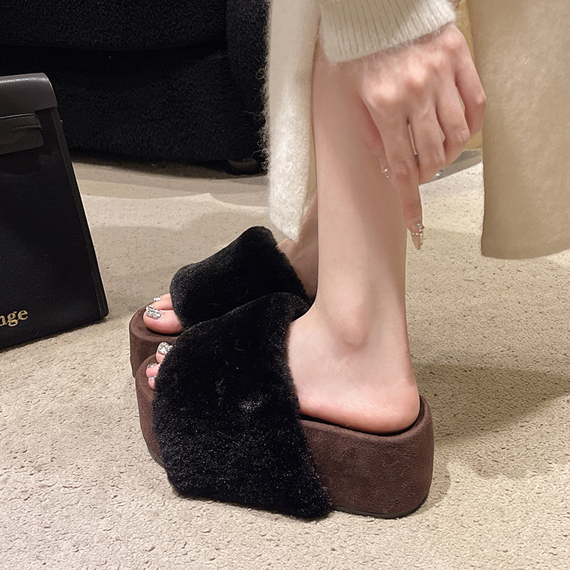 厚底棉拖鞋 2025秋冬季 女外穿一字拖潮鞋 百搭毛毛拖鞋 网红豹纹时尚