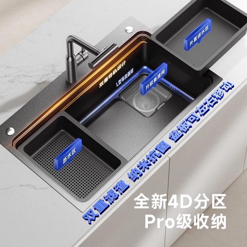 九牧旗舰店厨房洗菜盆水槽304不锈钢大单槽枪灰洗碗槽家用洗菜池