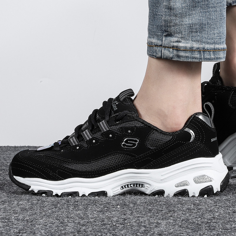 低帮健身训练鞋 秋季 运动鞋 黑色厚底老爹鞋 斯凯奇女鞋 熊猫鞋 休闲鞋