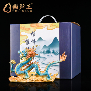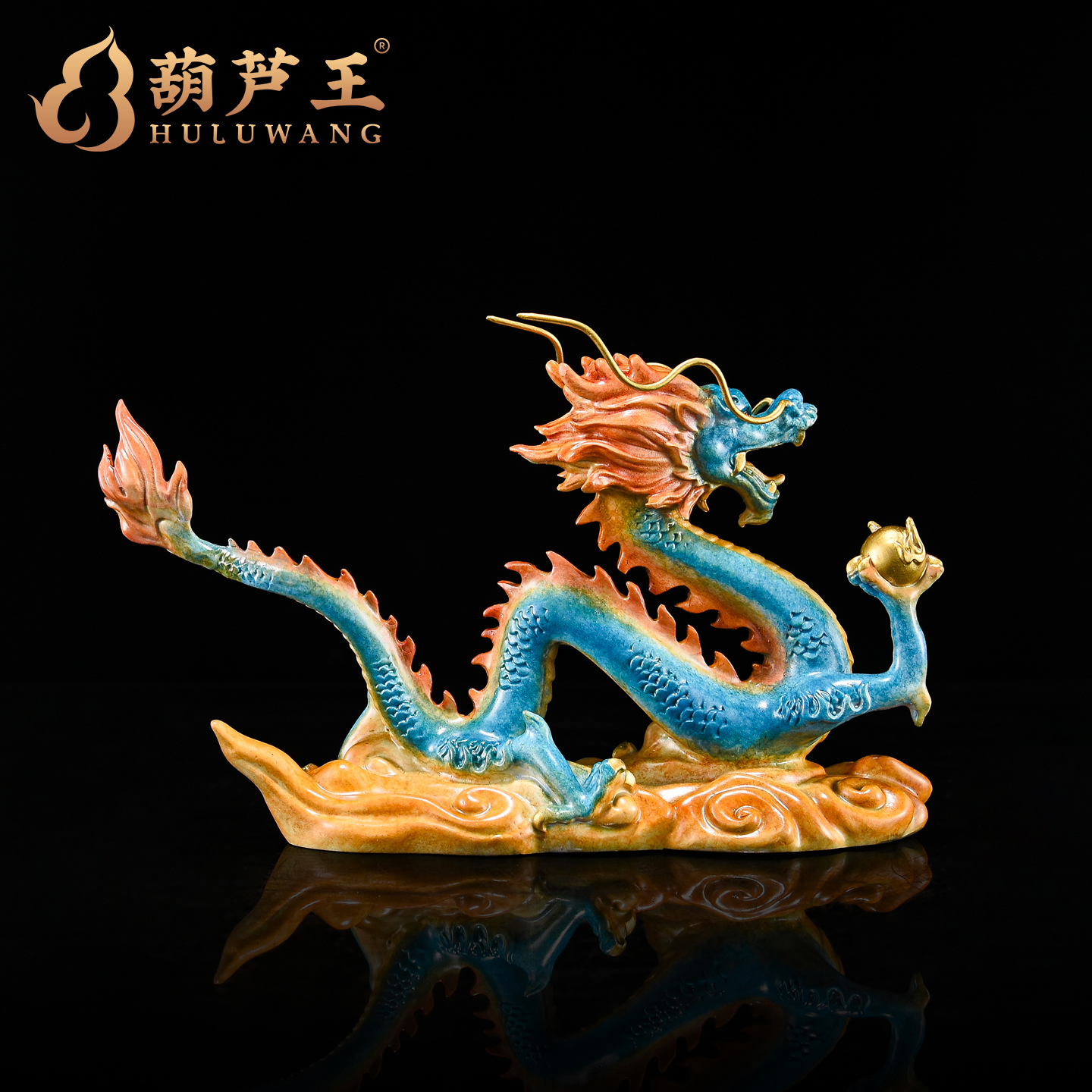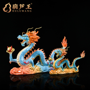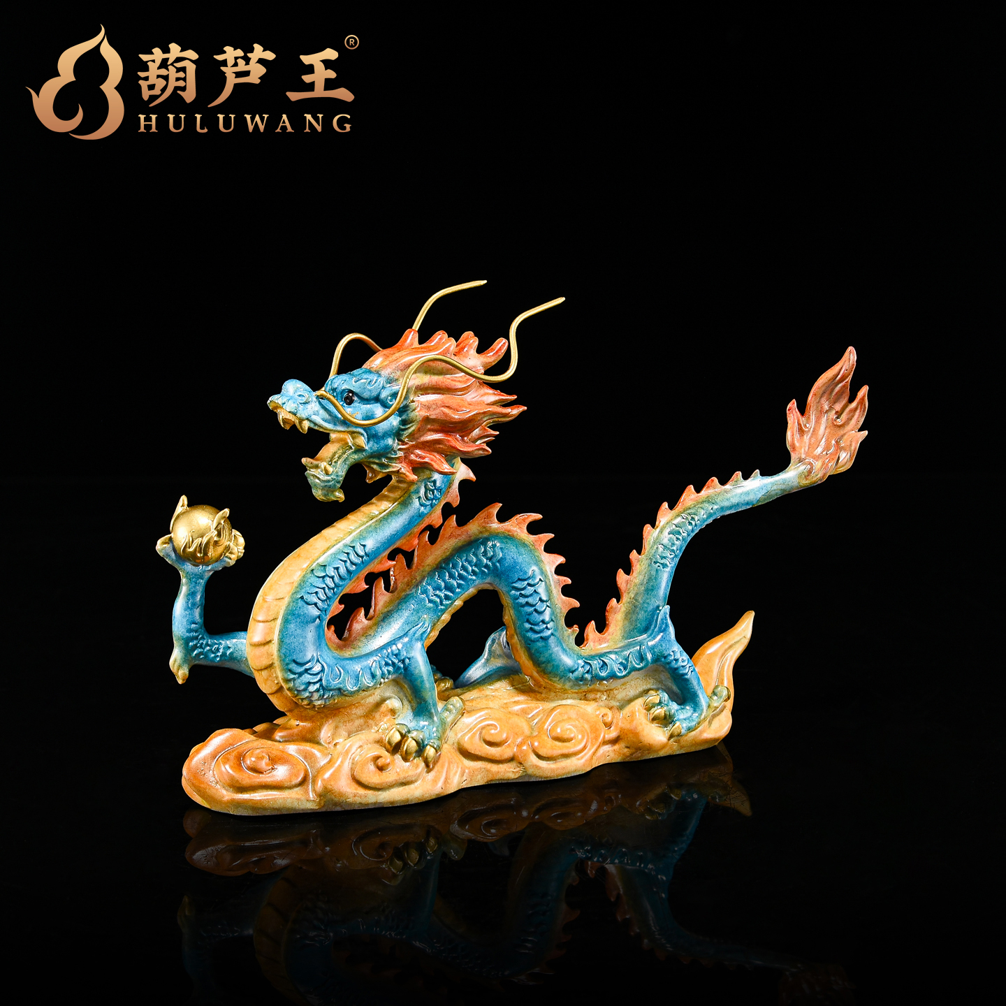 葫芦王铜龙摆件吉祥物生肖龙行天下五爪汉龙家居办公室装 饰工艺品