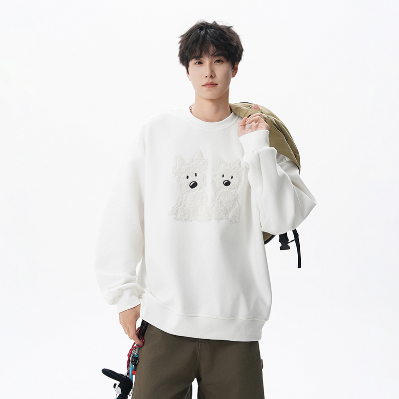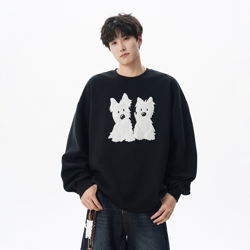 MardiMercredi摇尾珍珠小狗卫衣腊肠狗线条休闲宽松纯棉上衣新款