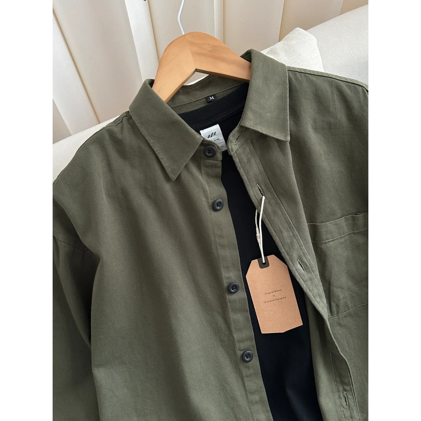 衬衣内搭叠穿秋季 男生少年感穿搭长袖 情侣外套 衬衫 军绿色日系工装