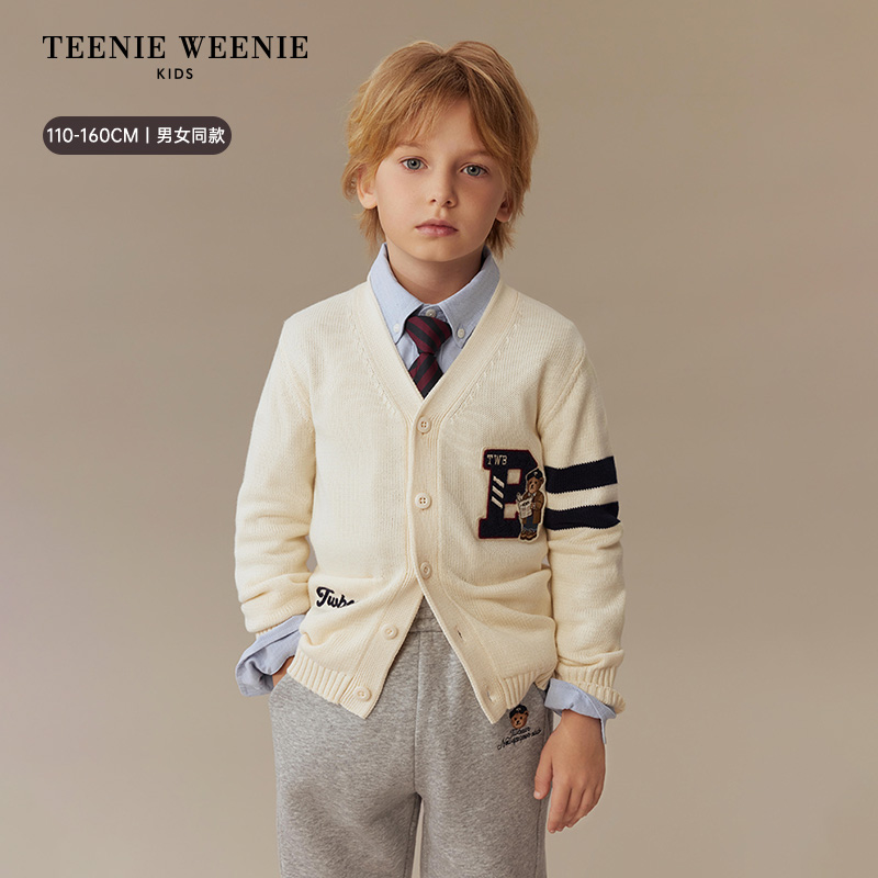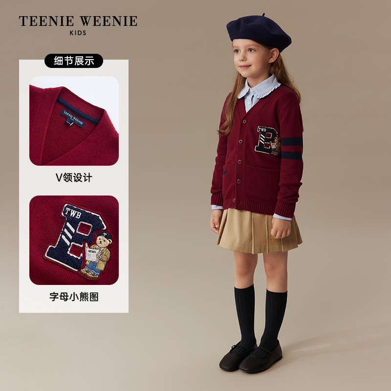 Kids小熊童装 TeenieWeenie 25男女童亲子学院V领毛织开衫 预售