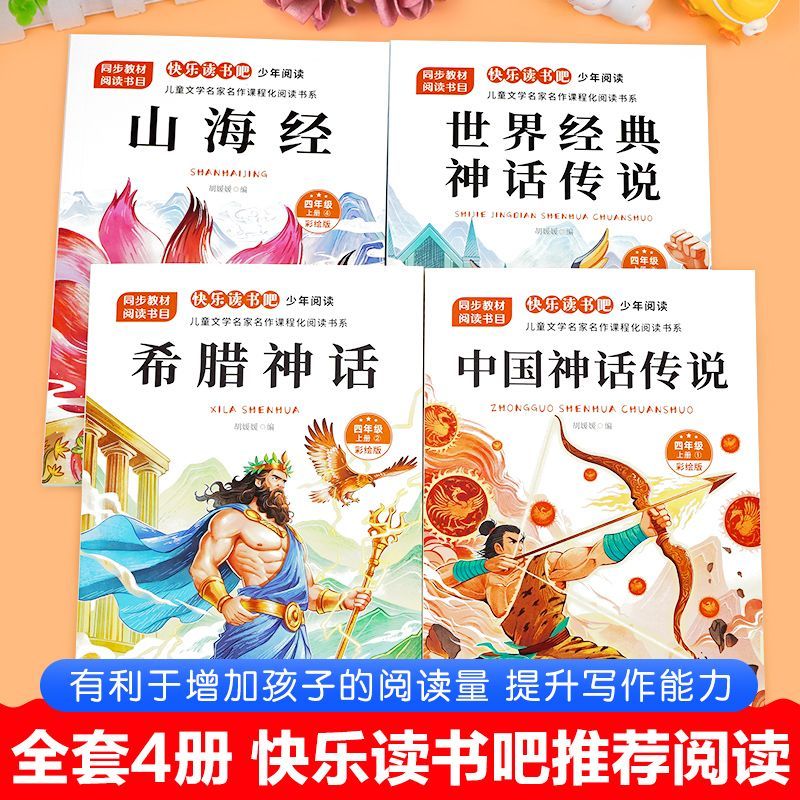 儿童文学暑假阅读课外书籍 4上必读经典 全4册中国古代神话传说山海经世界经典 神话传说希腊神话故事四年级上册快乐读书吧老师推荐