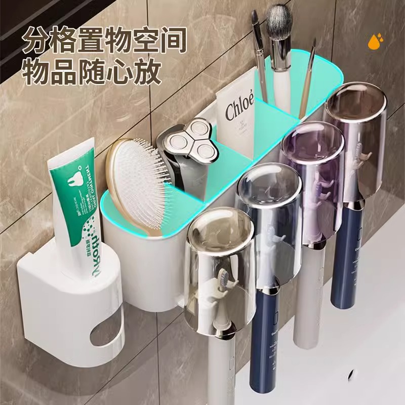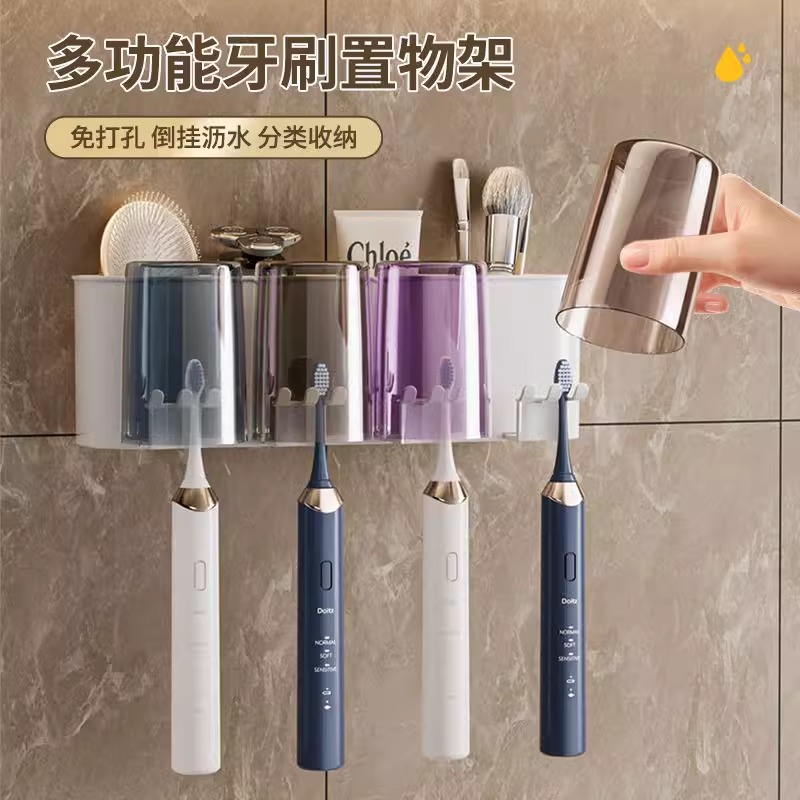 抗菌牙刷置物架免打孔刷牙杯漱口杯挂墙架子壁挂式 卫生间电动家庭