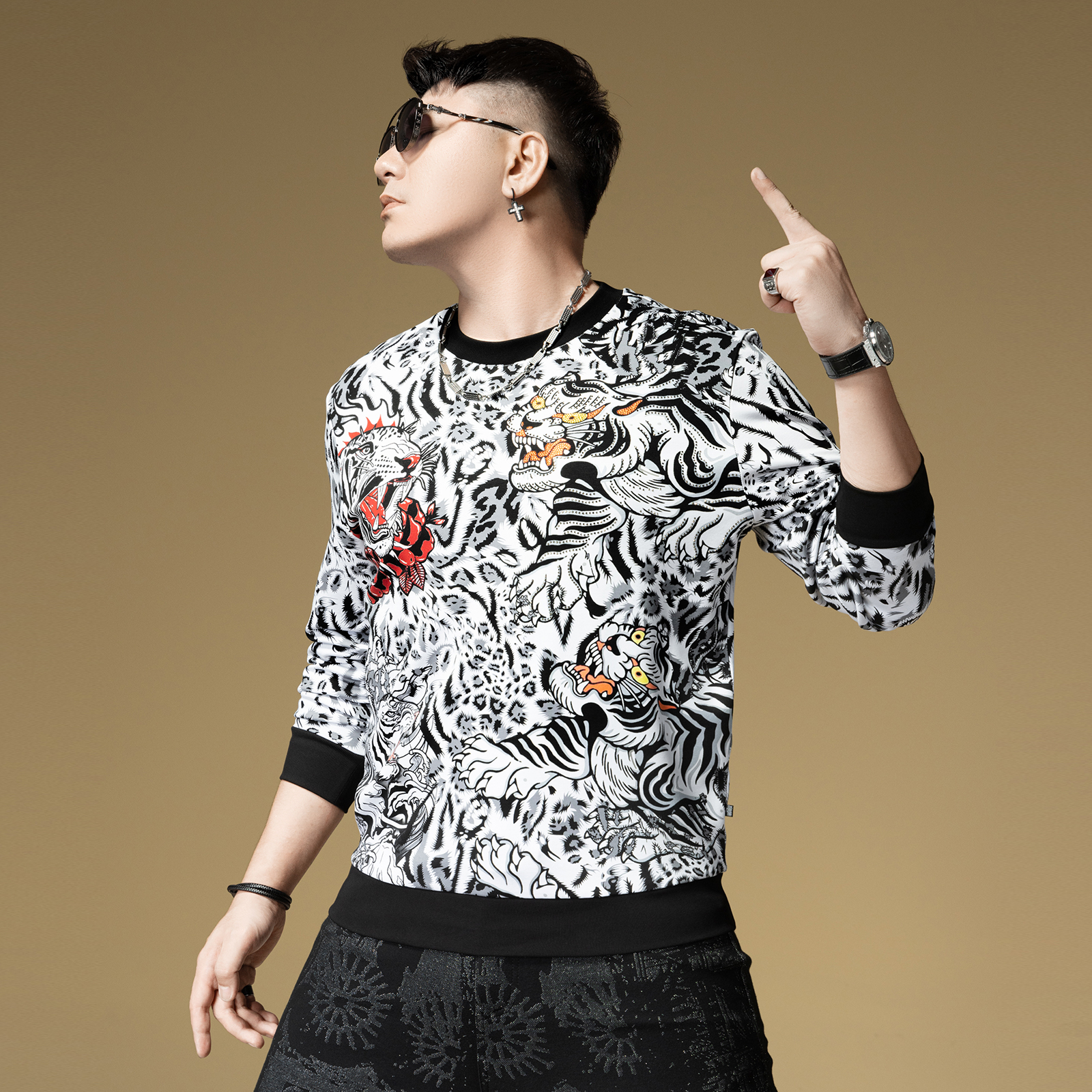 字母卫衣休闲时尚 美式 圆领宽松上衣506167 男士 三福2025秋冬新款