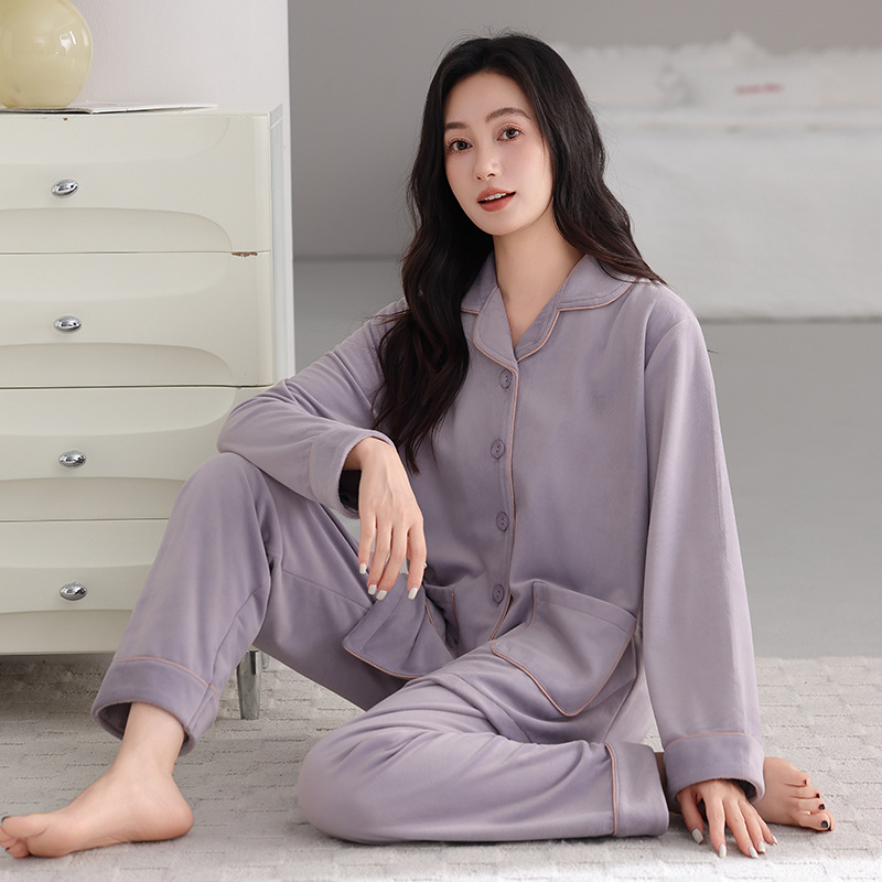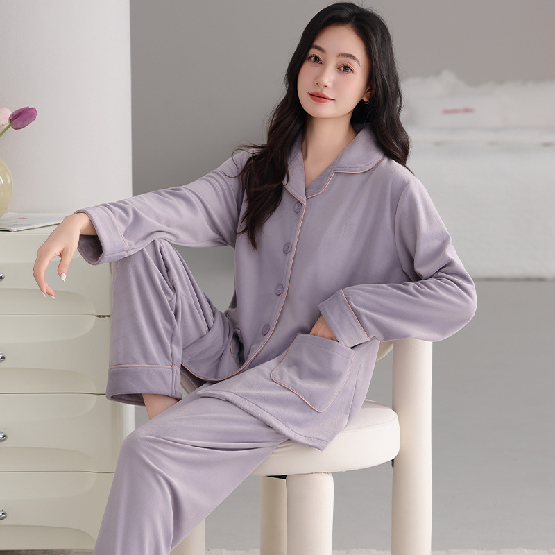可外穿家居服套装 女款 海岛绒珊瑚绒法兰绒保暖大码 睡衣女士秋冬季