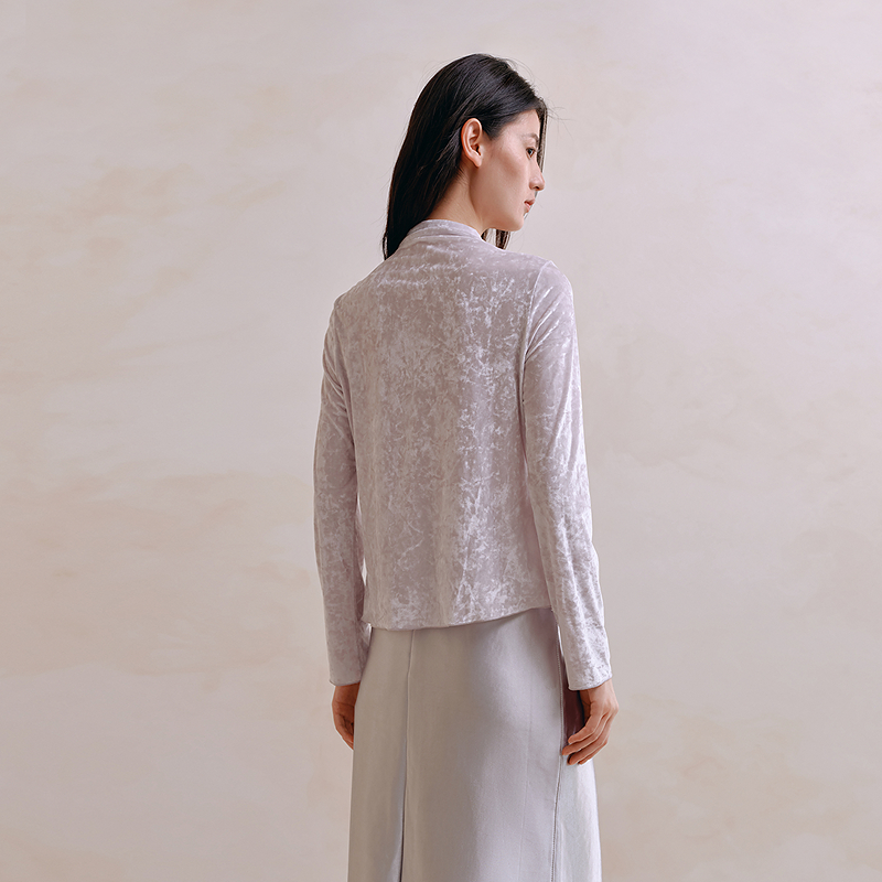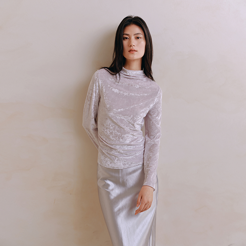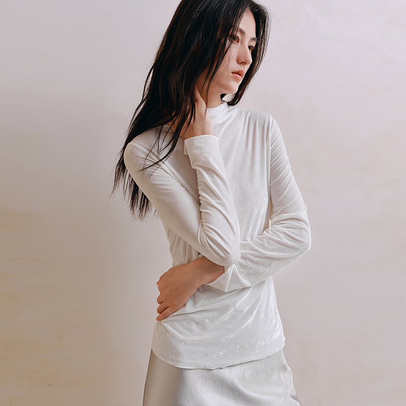 褶皱设计感修身 半高领长袖 舒适丝绒上衣 女秋新款 音儿冰花绒打底衫