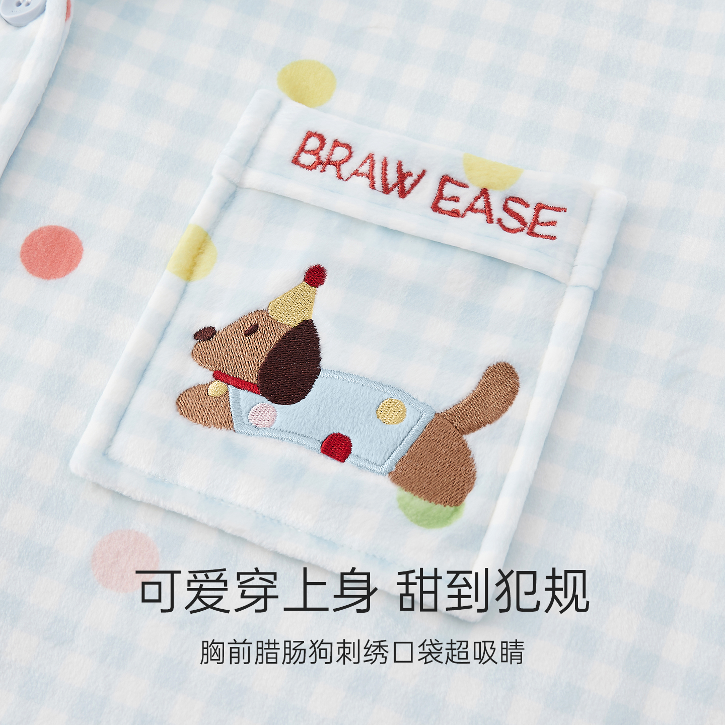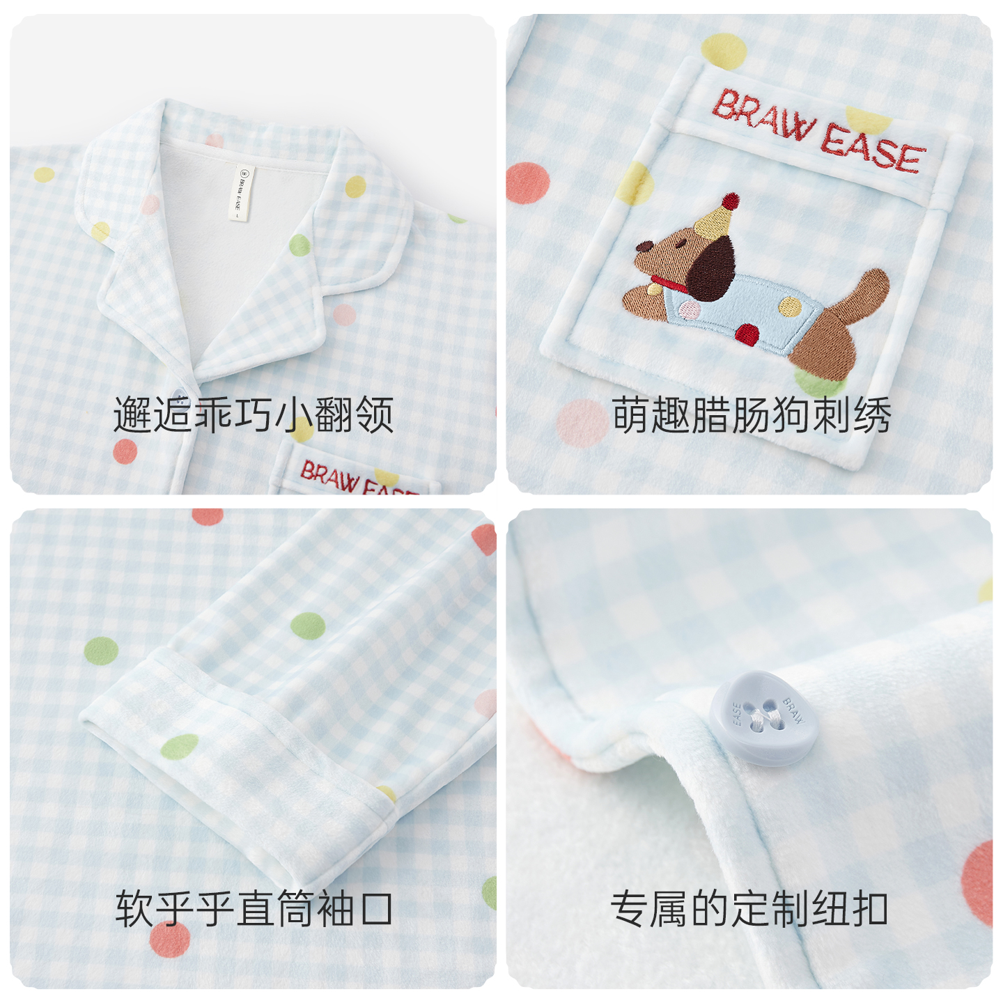 贝妍珊瑚绒睡衣女款 条纹家居服睡裙 秋冬保暖半边绒小香风睡袍大码
