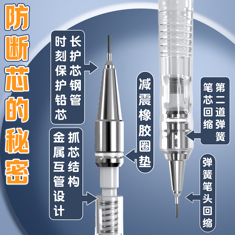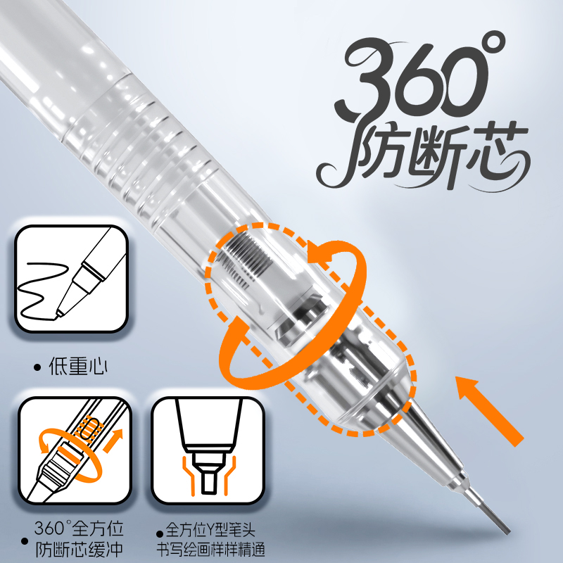 晨光360度防断芯自动铅笔学生专用自动笔0.5活动铅笔0.7橡皮高颜值礼盒素描笔绘画笔初中生专用铅笔套装 文具