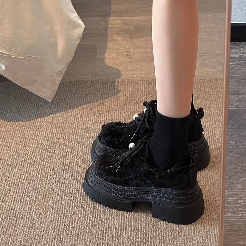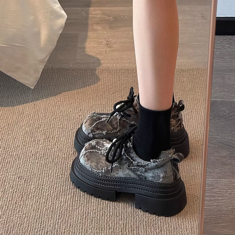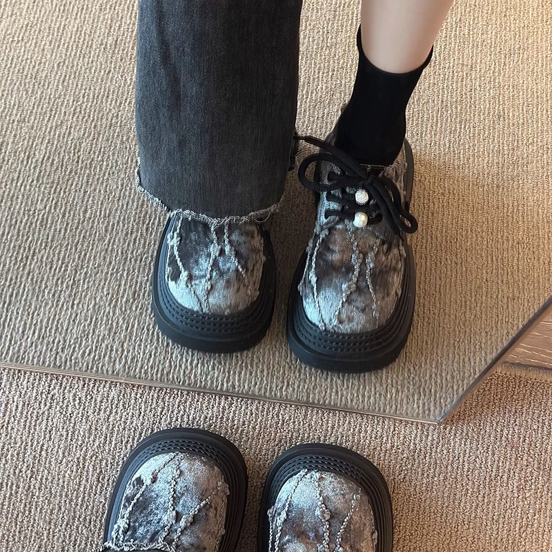 女2025春季 增高乐福单鞋 新款 子时尚 小个子厚底女鞋 大头系带小皮鞋