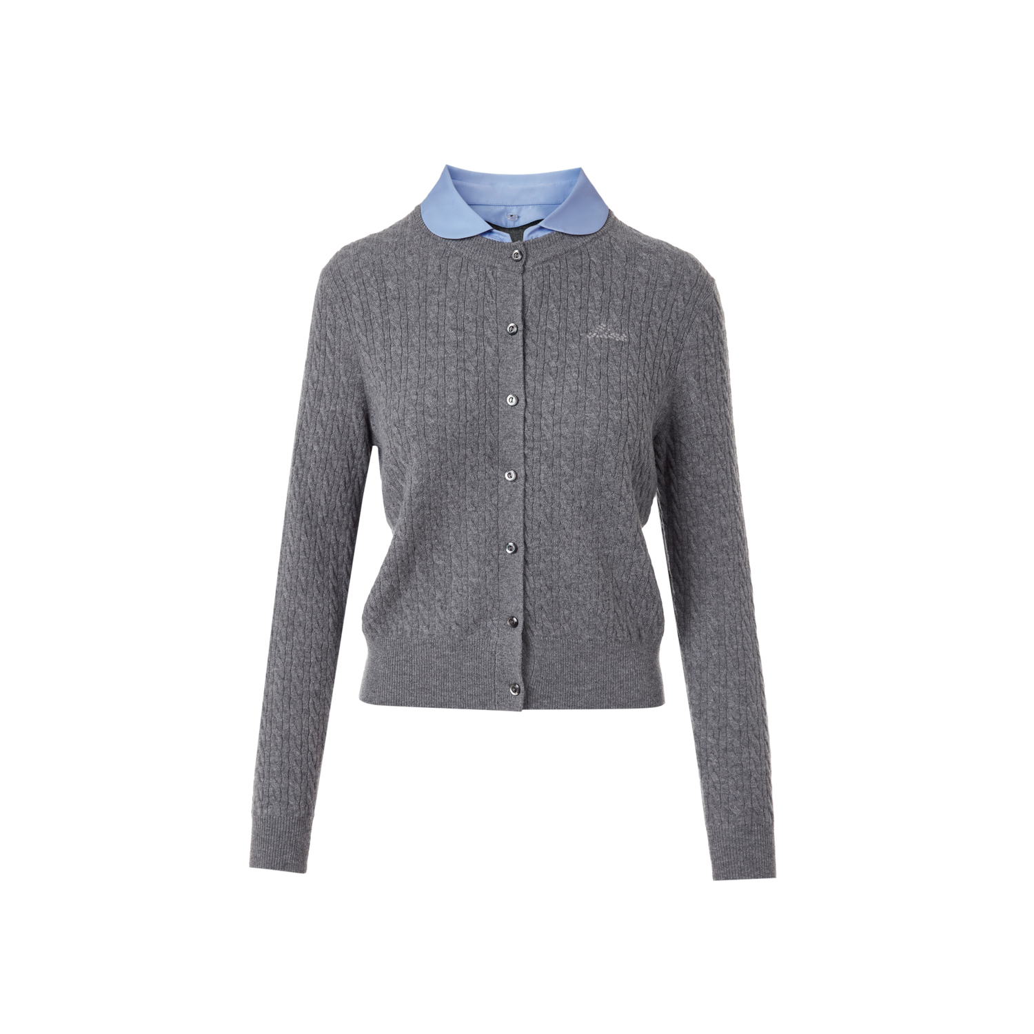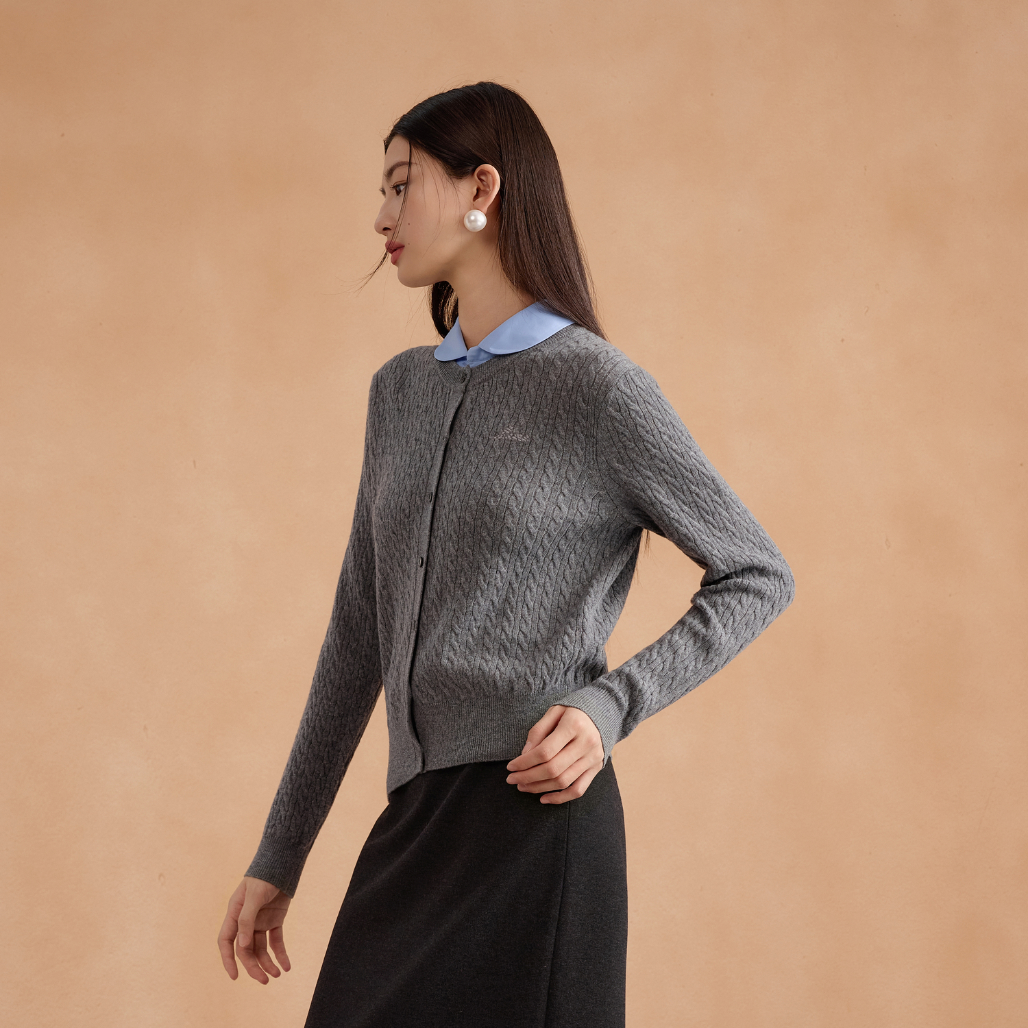撞色宽松智性风25年冬新 LIME莱茵针织圆领纯羊毛开衫 吉娜同款