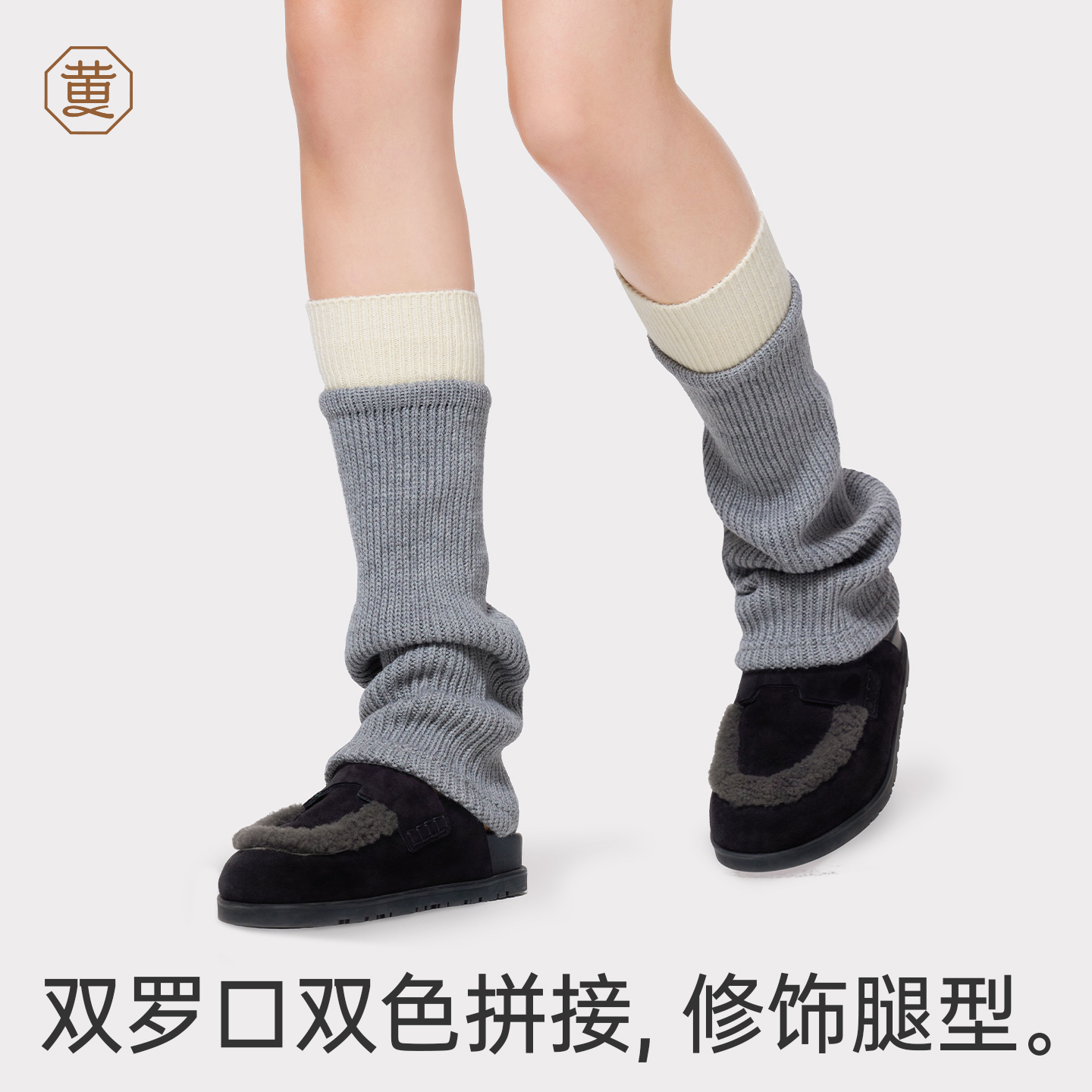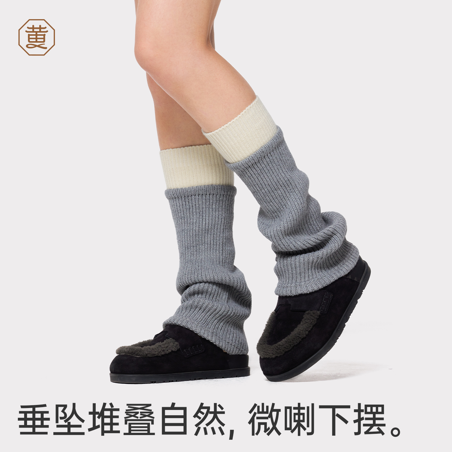 月子长袜 乐福鞋 木耳花边堆堆袜子女秋冬季 黑色纯棉中筒袜配小皮鞋