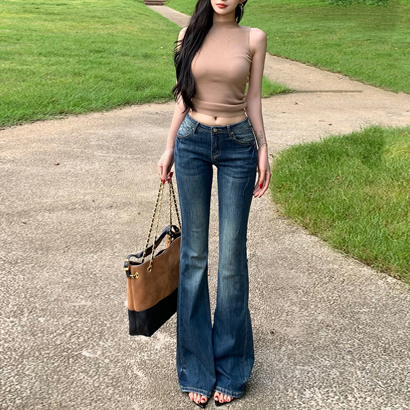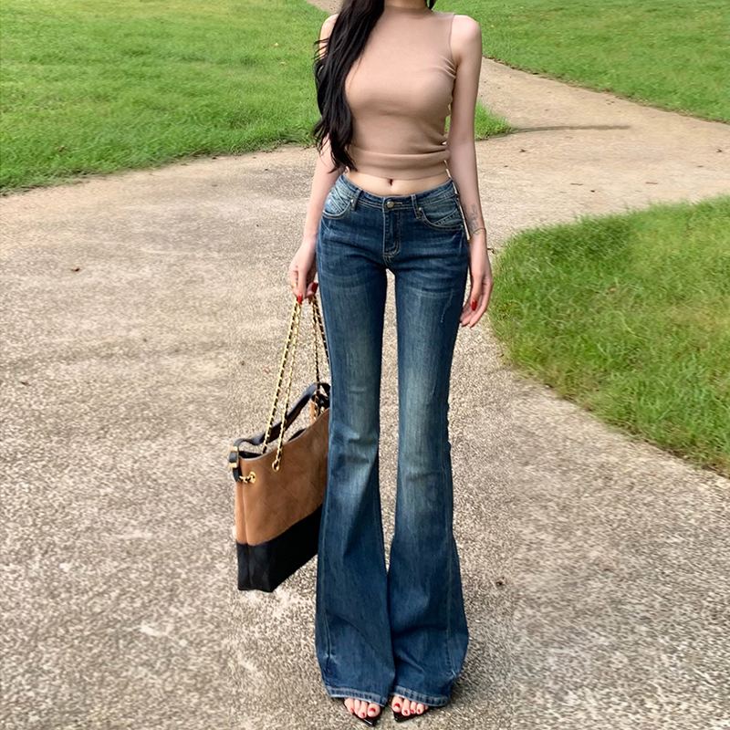 显瘦长腿辣妹百搭裤 中低腰经典 修身 女2025早秋新款 超模微喇牛仔裤