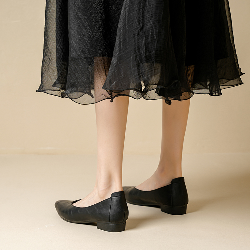 真皮奶奶鞋 子酒红色法式 女粗跟中跟cleanfit鞋 2025秋尖头浅口单鞋