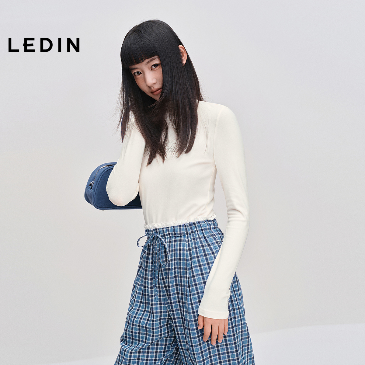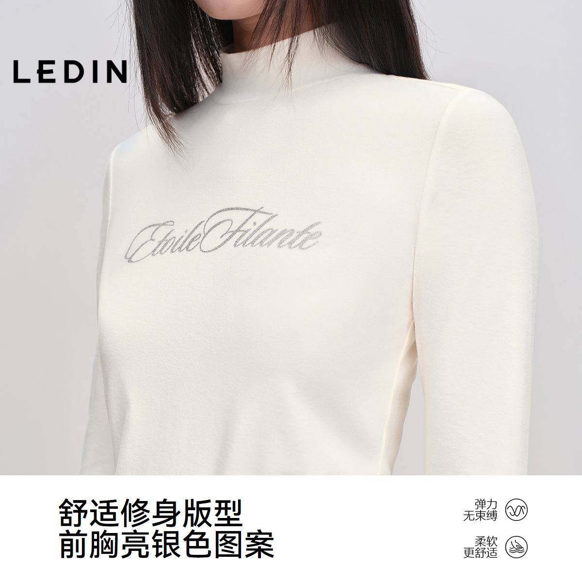 T恤女秋冬季 乐町韩系清甜字母印花半高领长袖 内搭打底衫 预