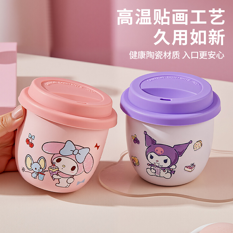 摩登主妇三丽鸥儿童水杯家用杯子陶瓷马克杯可爱早餐杯刻度牛奶杯