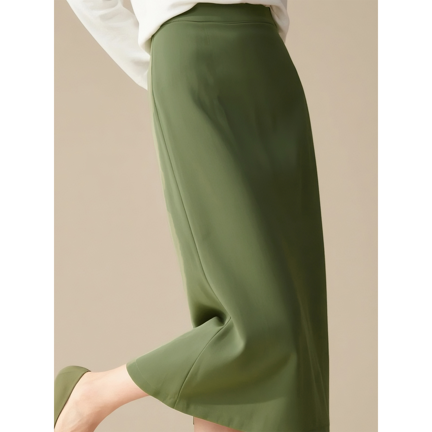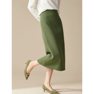 绿色半身裙女2025年秋季 高腰显瘦百搭气质简约通勤中长直筒裙 新款