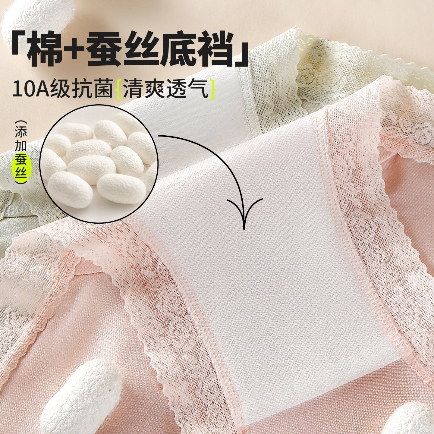 樱姿娜第三代铂金蚕丝内裤 女无痕A类兰精莱赛尔10A抗菌蕾丝三角裤